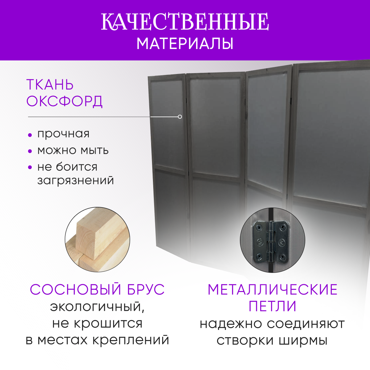 Ниже Вы можете прочитать отзывы на Ширма перегородка складная 4 створки Серая, ознакомится с подробными характеристиками, посмотреть интересные обзоры и фотографии на Ширма перегородка складная 4 створки Серая.