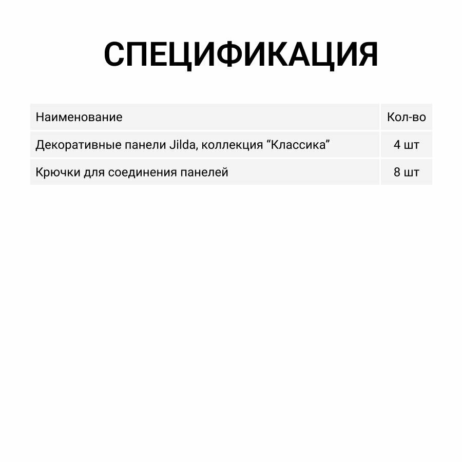 | Комплектация | Комплект декоративных панелей - 4 шт Крючки для навески панелей - 8 шт |