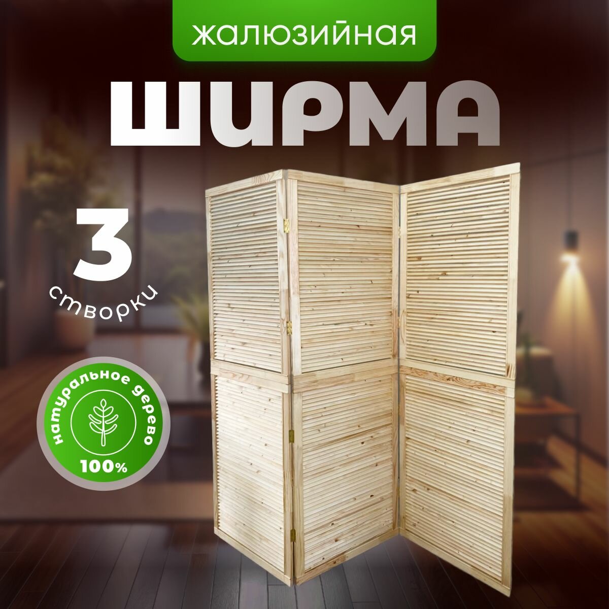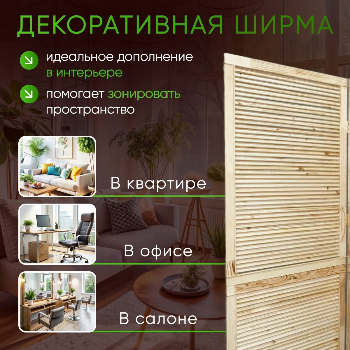 Ширма складная 3-секционная деревянная для зонирования интересное: