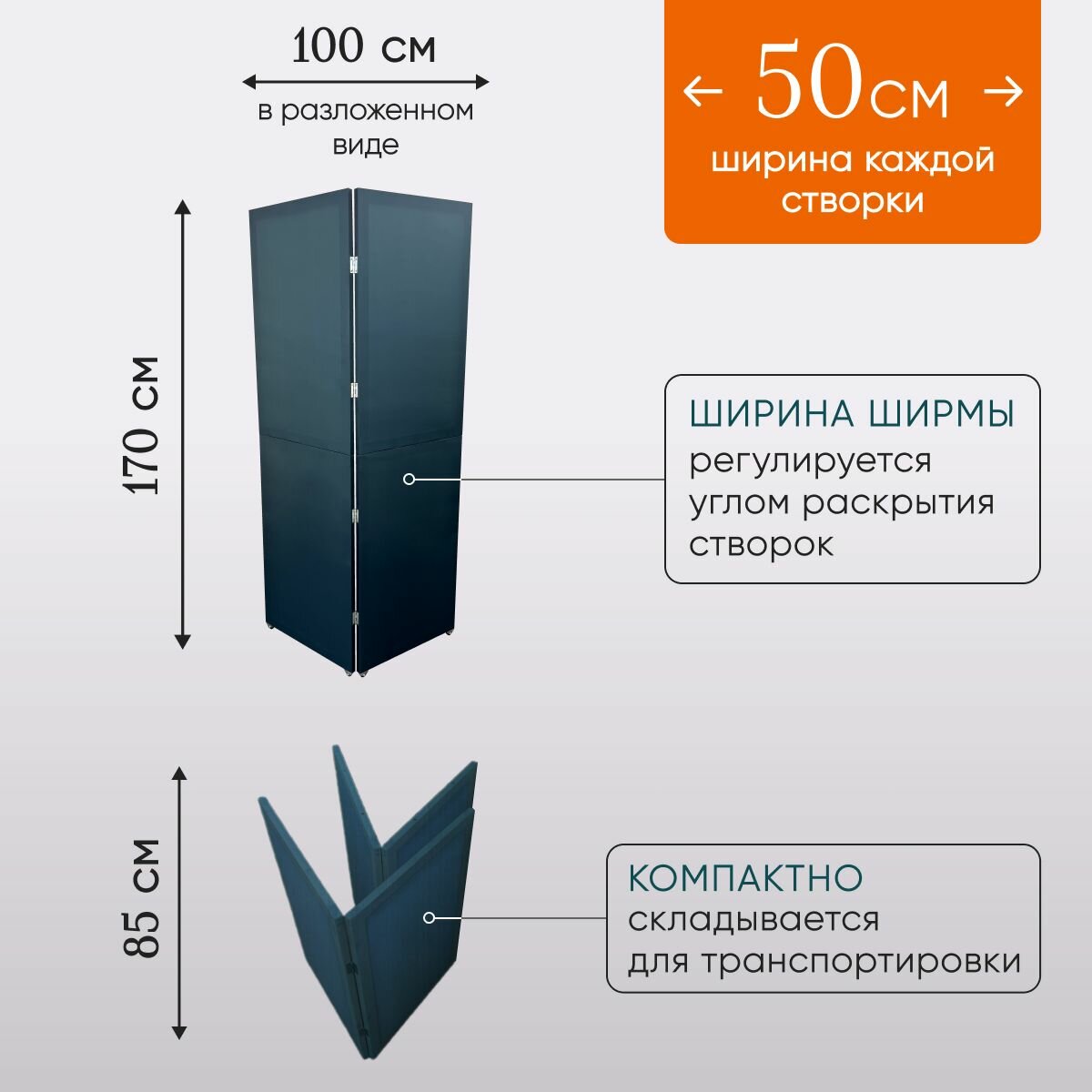 Купить Ширма перегородка 2-х секционная раскладная для зонирования на колесиках