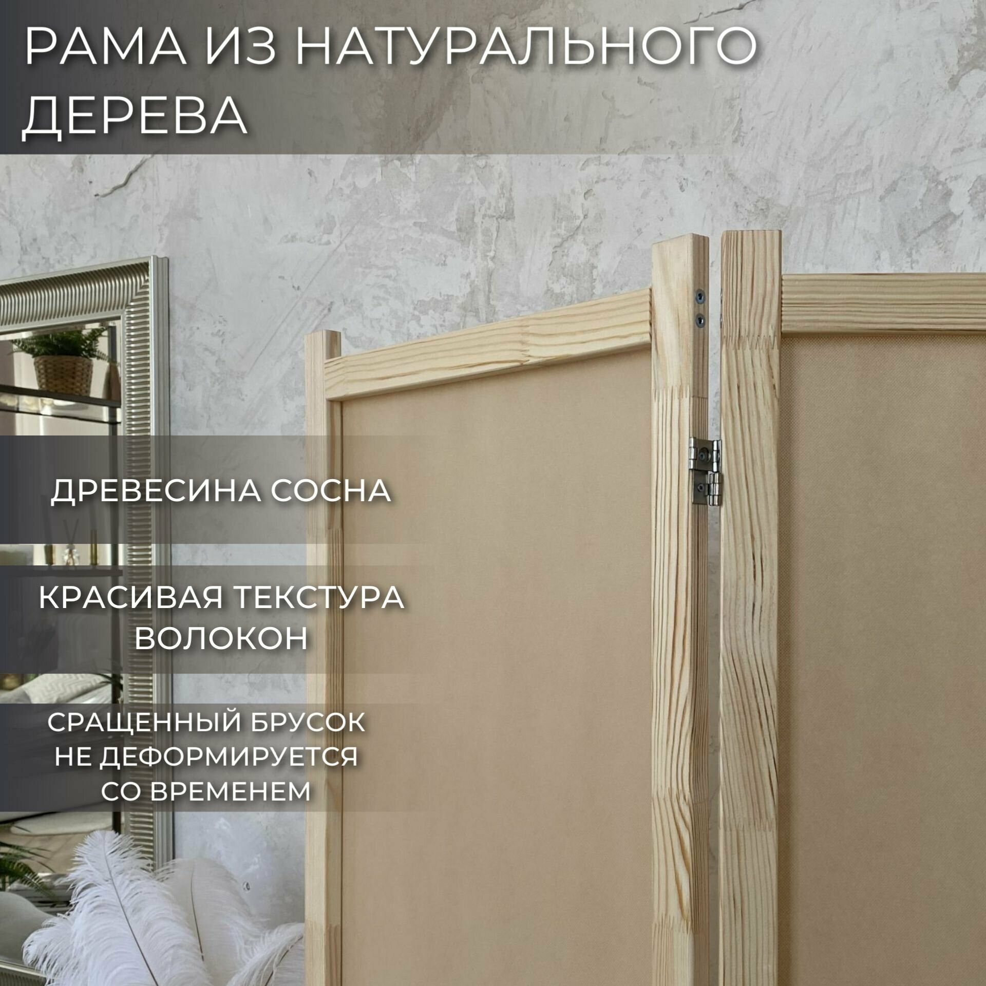 Купить Ширма перегородка для зонирования комнаты. Рама из натурального дерева. 4 створки. Цвет бежевый.