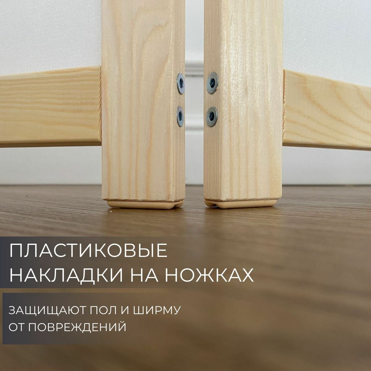 Ширма перегородка для зонирования комнаты. Рама из натурального дерева. 3 створки.
