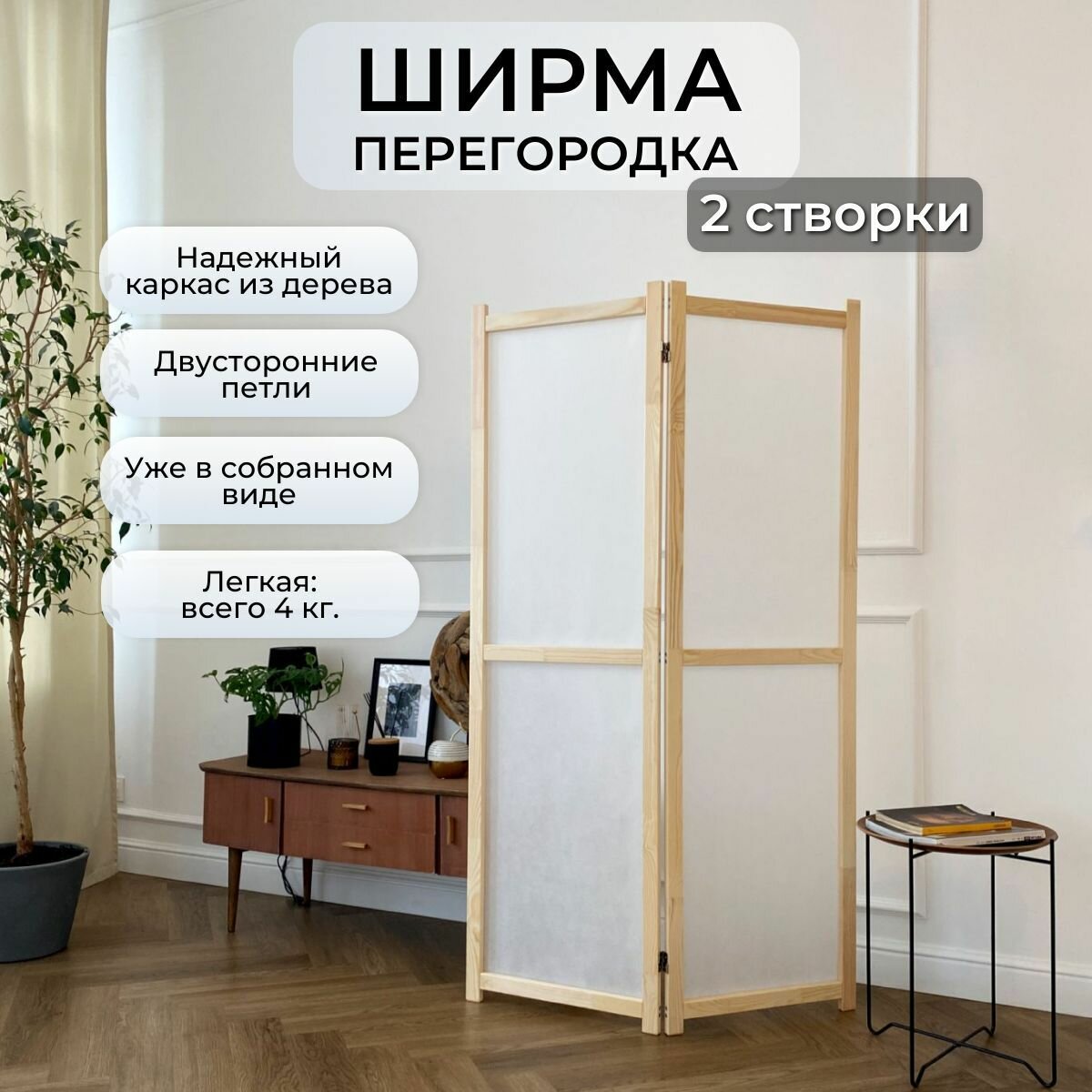 Купить Ширма перегородка для зонирования комнаты. Рама из натурального дерева. 2 створки. Цвет белый.
