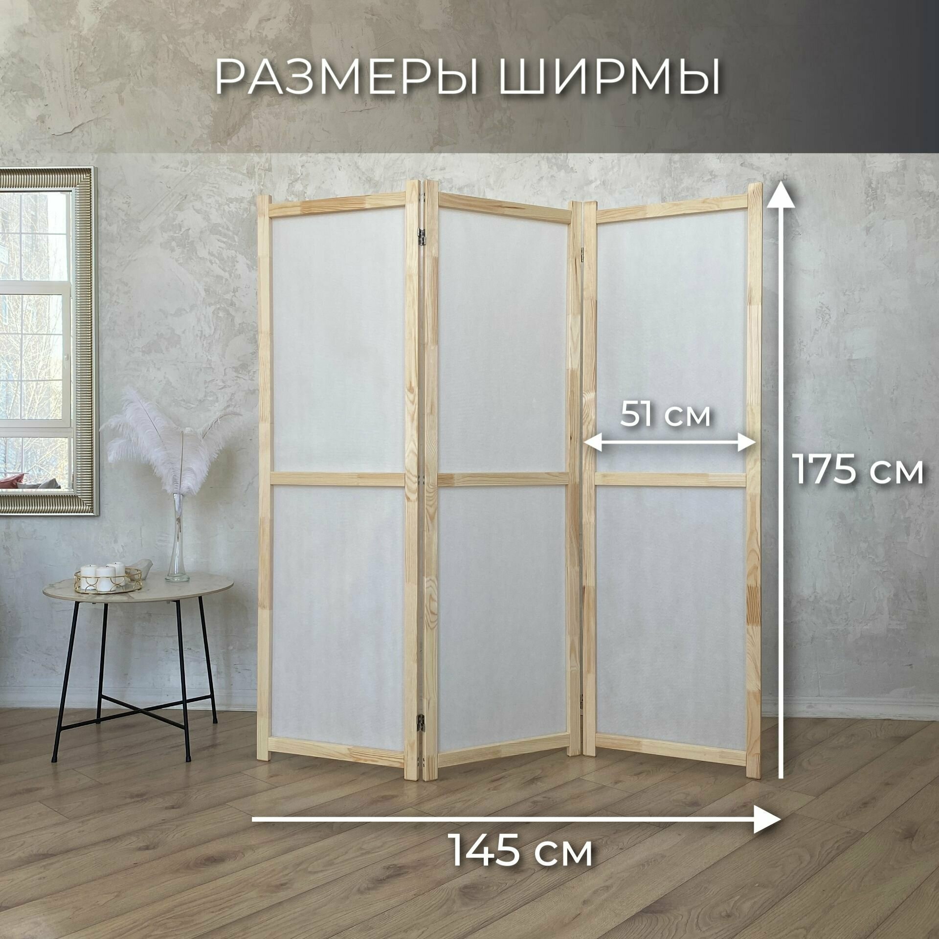 Купить Ширма перегородка для зонирования комнаты. Рама из натурального дерева. 3 створки.