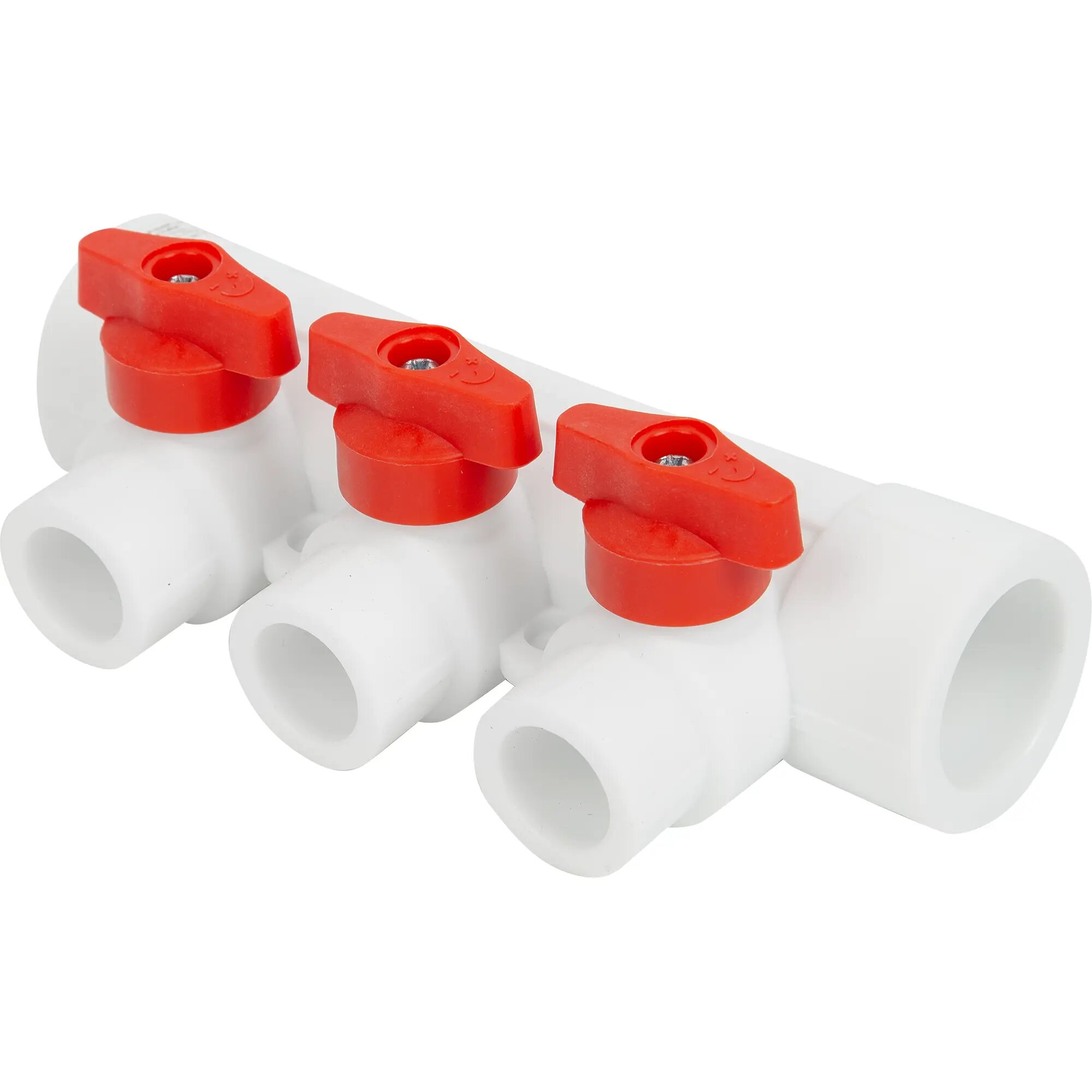 Коллектор PP-R бел Дн32х20 на 3 выхода с кранами, VALFEX 101133203 (1 шт.)