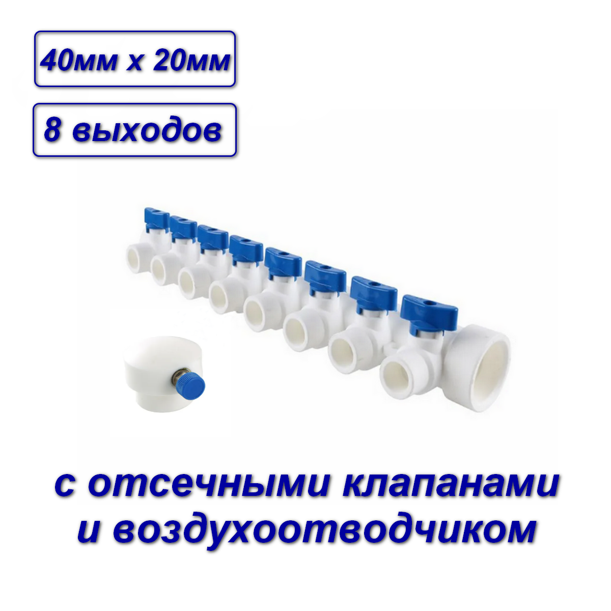 Коллектор PPR с отсечными син. кранами и воздух-ком 40х20 8 выходов (15/1) бел. K VALFEX 111134008