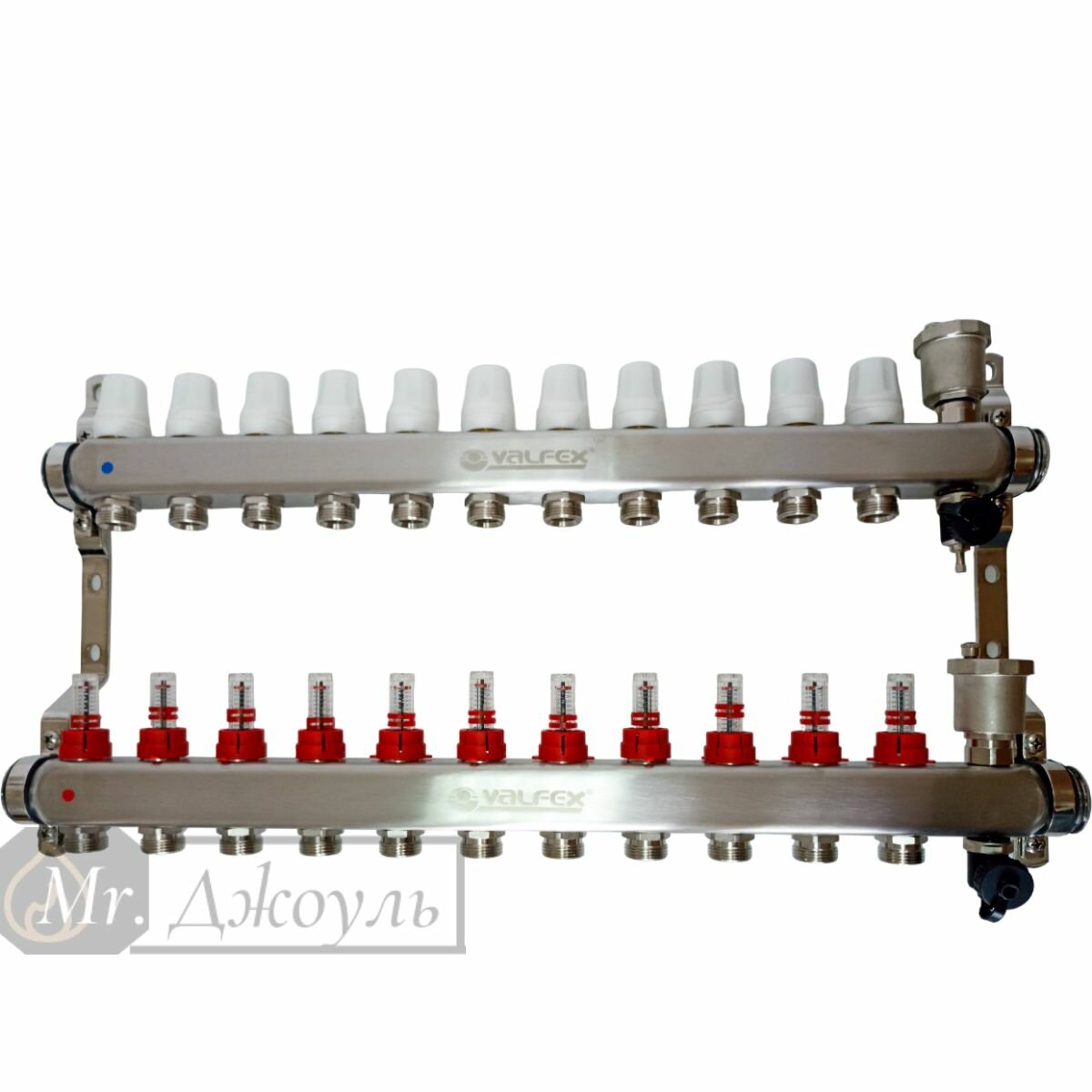 Купить Коллектор для теплого пола с расходомерами и концевиками без кранов 1"x3/4" 11 выходов, нержавеющая сталь VALFEX арт. VF.586.0611