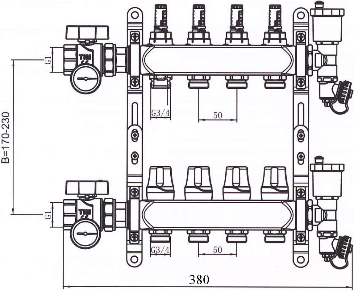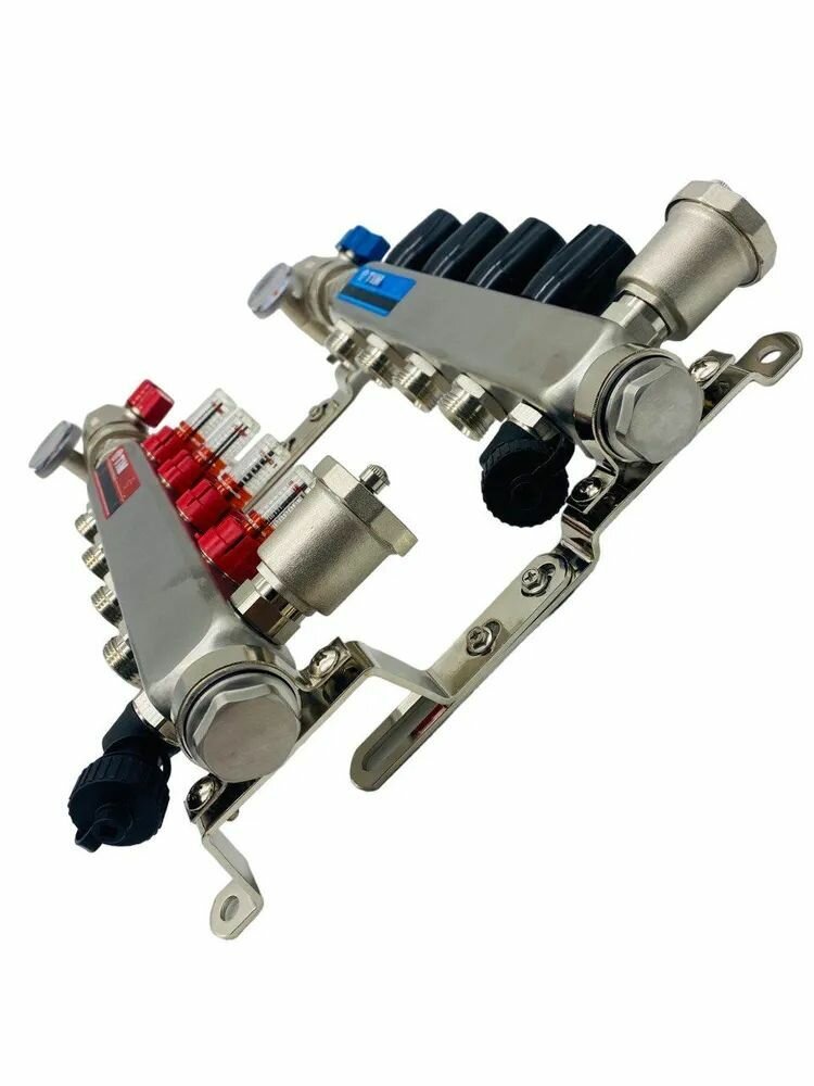 | Подробная комплектация | напорный коллектор с запорными вентилями - 1 шт., обратный коллектор с термостатическими вентилями - 1 шт., дренажные клапаны - 2 шт., автоматический воздухоотводчик - 2 шт., цельнометаллический кронштейн - 2 шт., заглушки - 2 шт. |