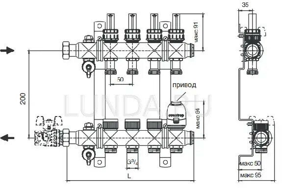 Коллектор концевой нерегулируемый STOUT (SDG-0016-005003) 3 контура, в теплоизоляции DN 32