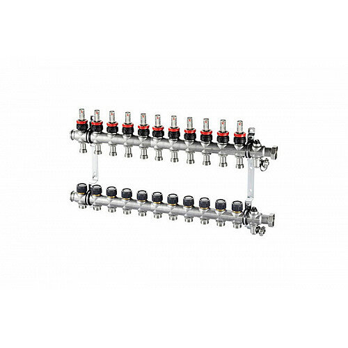 1404360 Коллекторная группа Oventrop "Multidis SF" на 10 контуров из нерж.стали 1" с регулирующими вставками и расходомерами 0,5-5 л/час