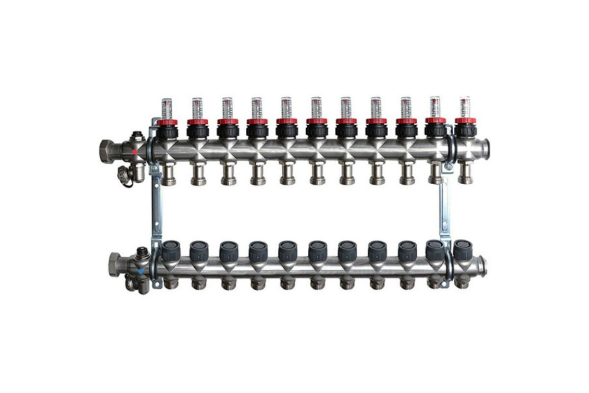 Купить 1404361 Коллекторная группа Oventrop "Multidis SF" на 11 контуров из нерж. стали 1" с регулирующими вставками и расходомерами 0,5-5 л/час