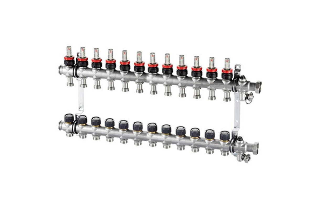 1404362 Коллекторная группа Oventrop "Multidis SF" на 12 контуров из нерж.стали 1" с регулирующими вставками и расходомерами 0,5-5л/час