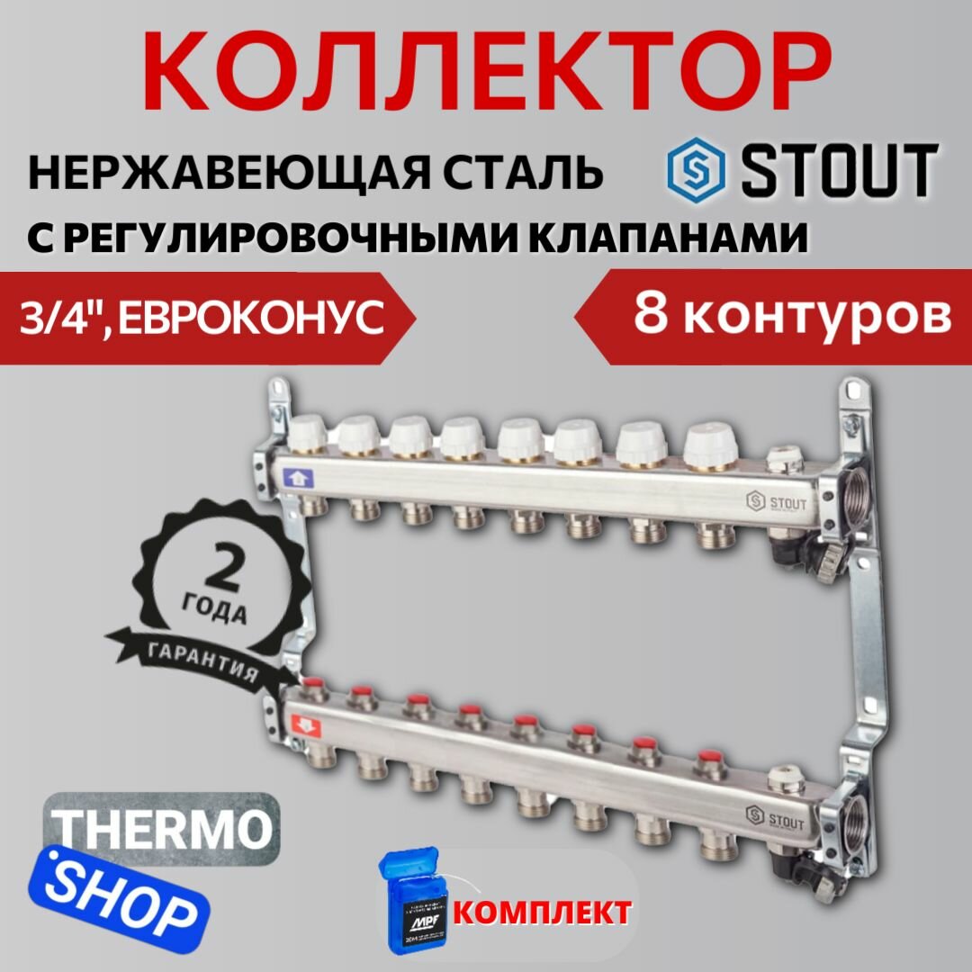 Коллектор с запорными клапанами 8 вых. Stout (SMS-0932-000008)
