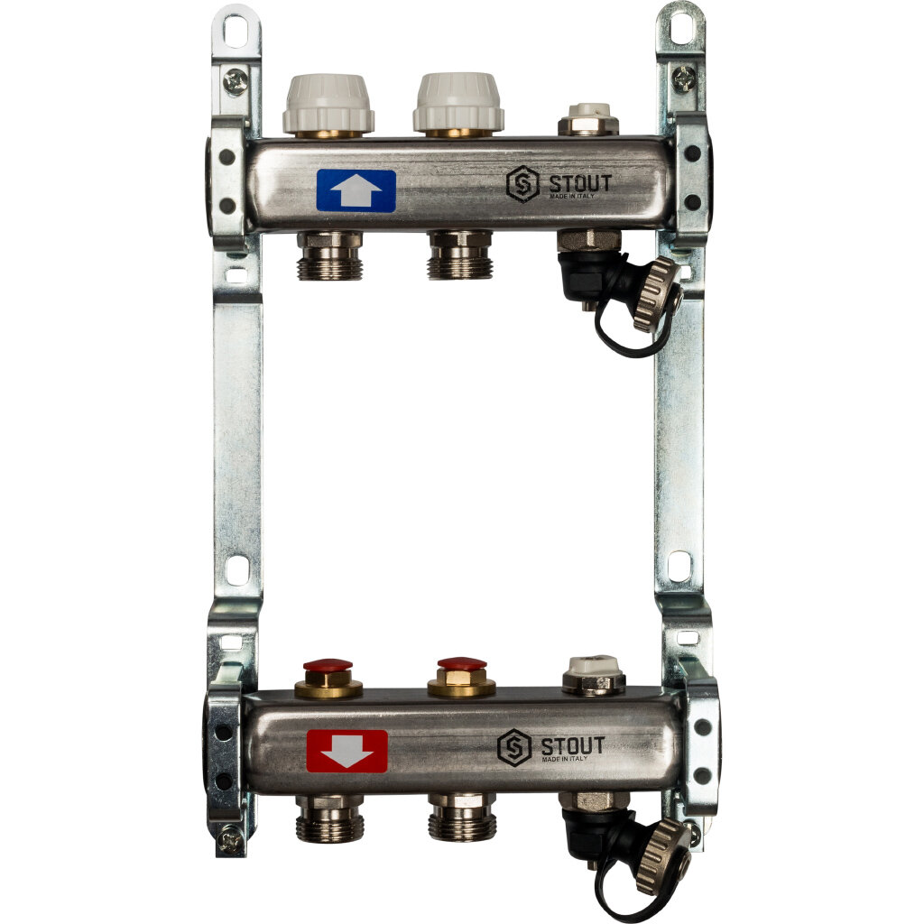 Коллектор с запорными клапанами 2 вых. Stout (SMS-0932-000002)