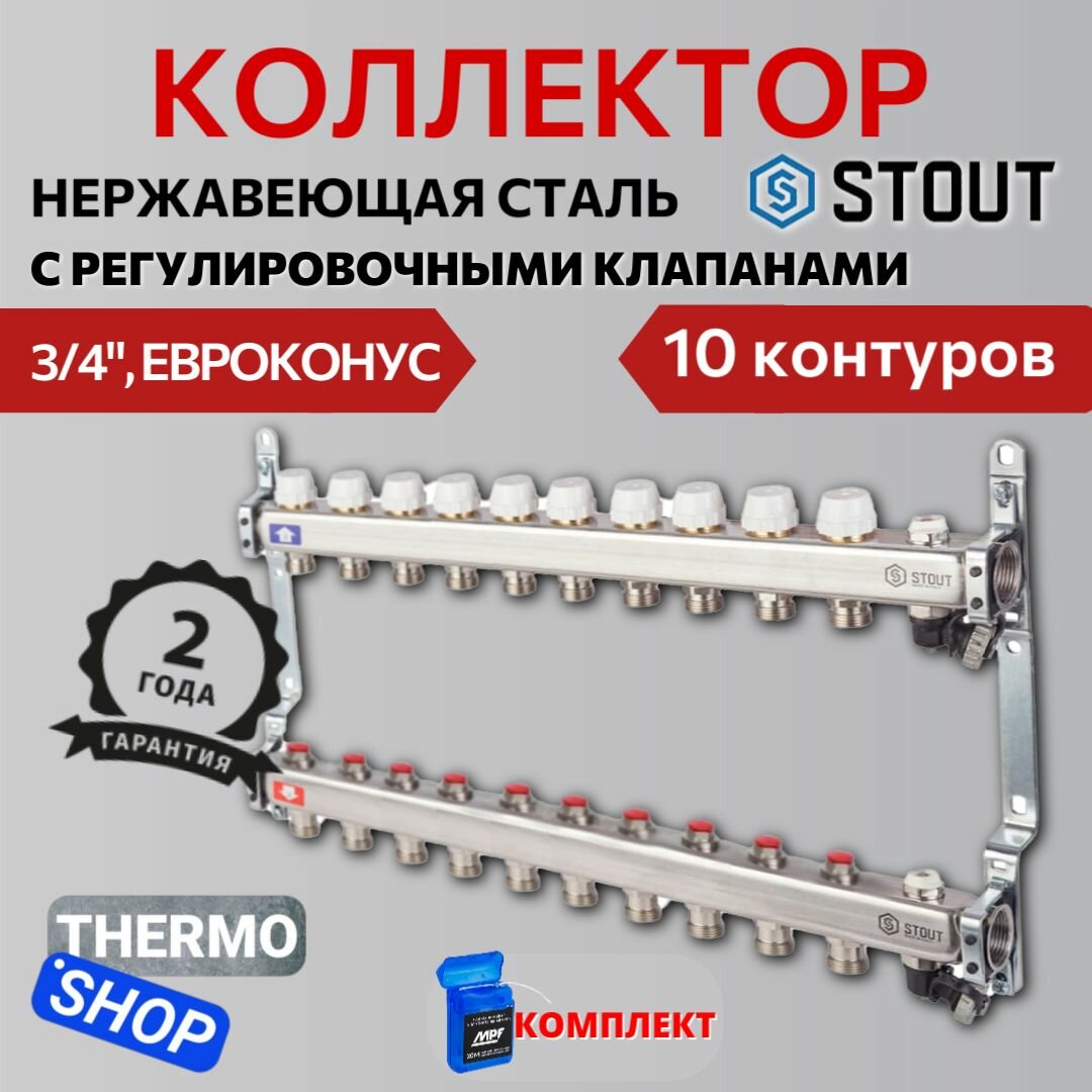 Коллектор с запорными клапанами 10 вых. Stout (SMS-0932-000010)