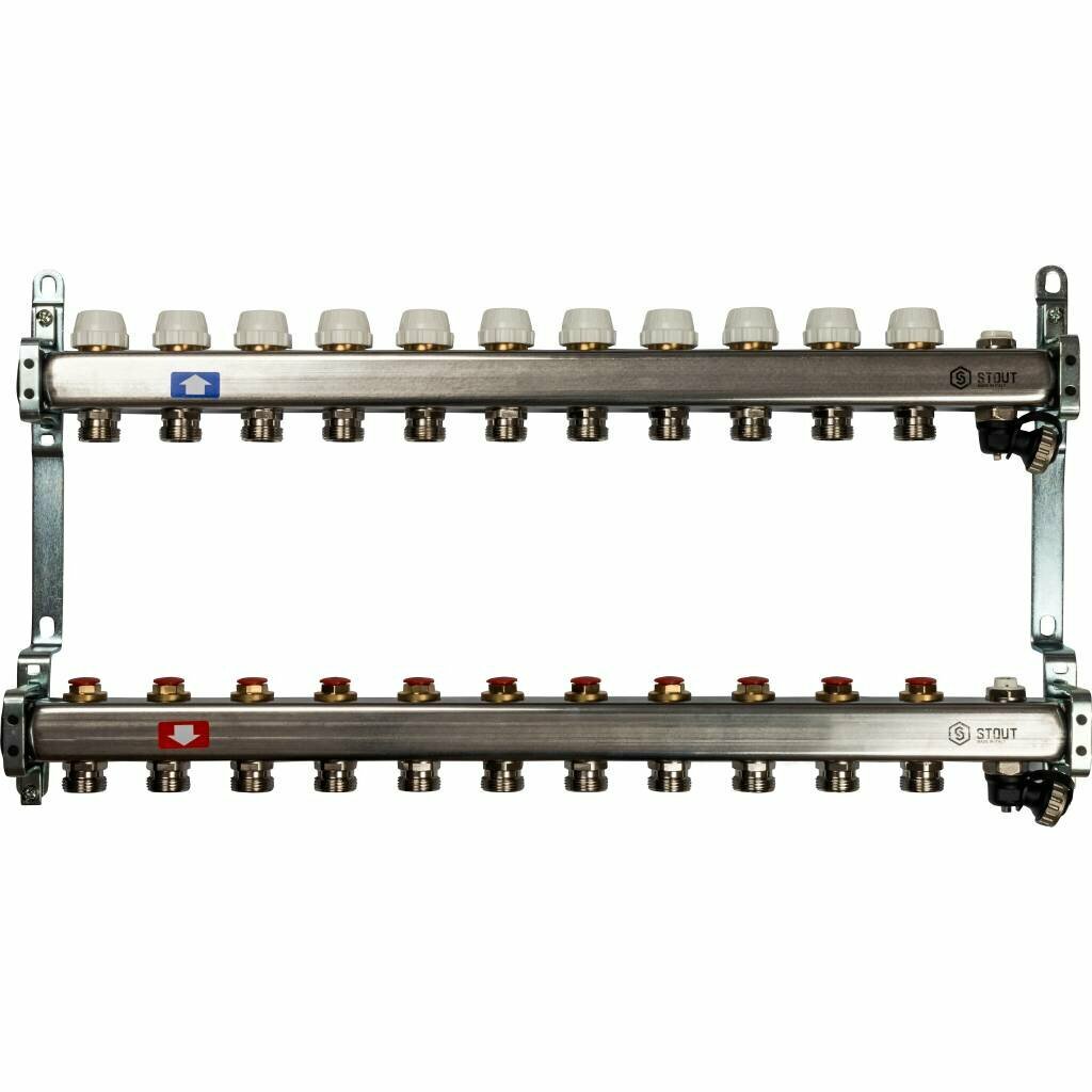 Коллектор сантехнический для водоснабжения, для отопления из нержавеющей стали без расходомеров 12 выходов STOUT SMS-0932-000012