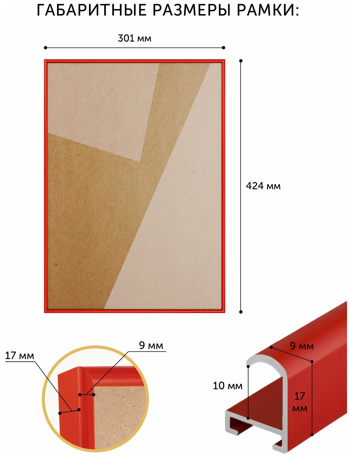 Металлическая рамка А3 (300х420 мм), Нельсон; цвет красный интересное: