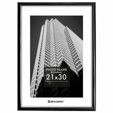 Рамка 21х30 см небьющаяся, багет 14 мм, пластик, BRAUBERG "Original", черная, 391229
