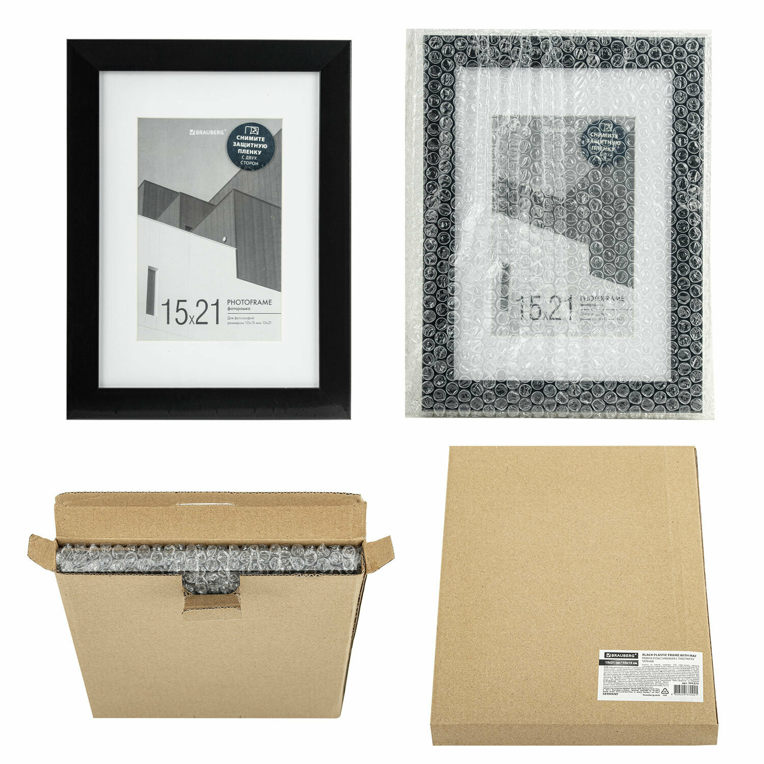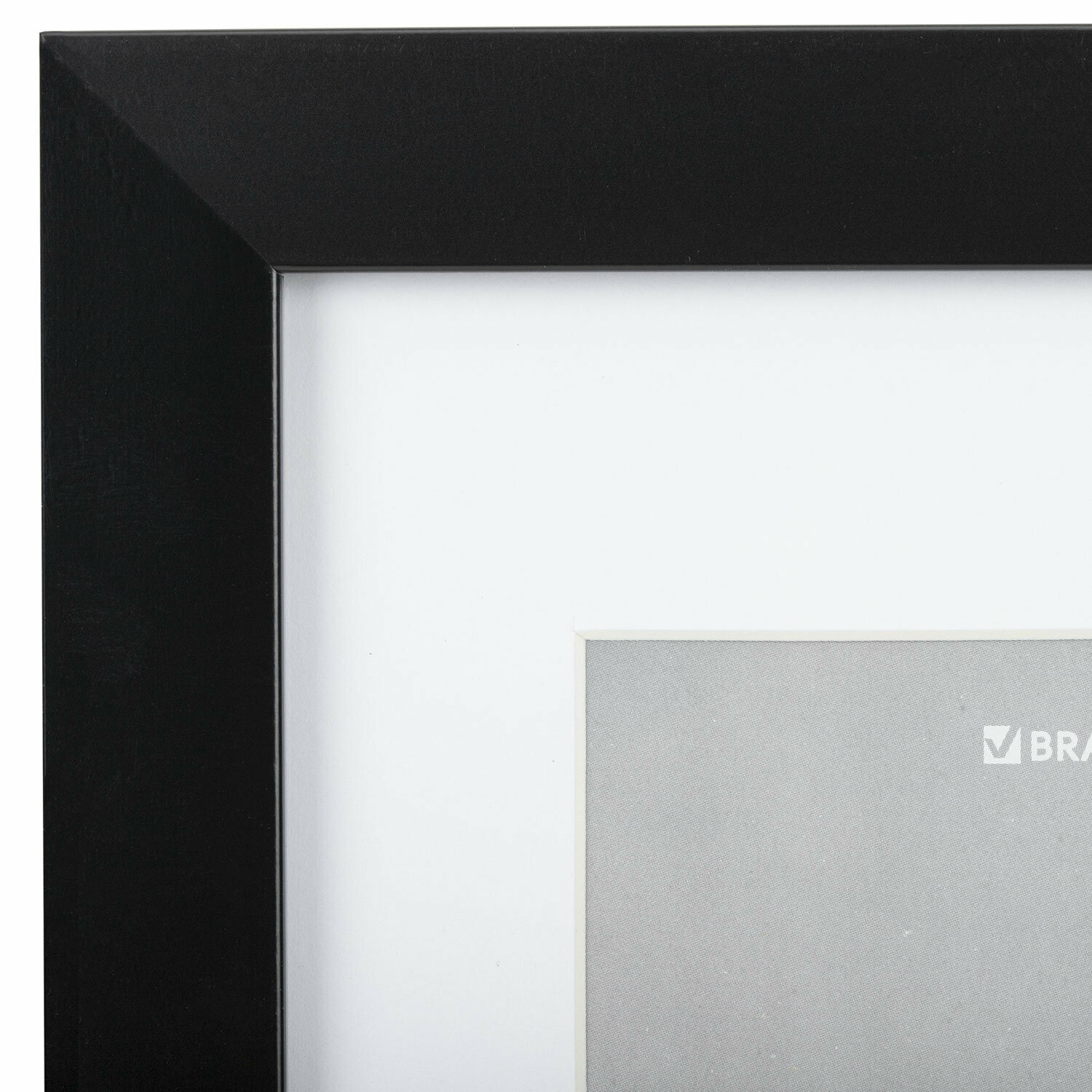Рамка (фоторамка) для фото, фотографий, картин, грамот на стену А4 21х30, с паспарту А5 15х21, небьющаяся, багет, пластик, Brauberg, черная, 391275