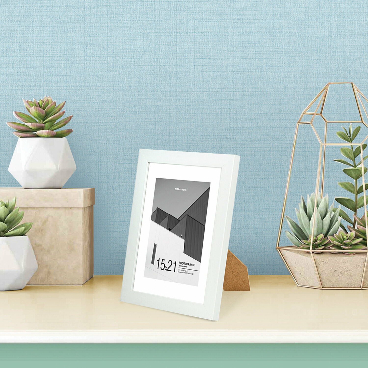 Купить Рамка (фоторамка) для фото, фотографий, картин, грамот на стену А5 15х21, с паспарту 10х15, небьющаяся, багет 20 мм пластик, Brauberg, белая, 391274