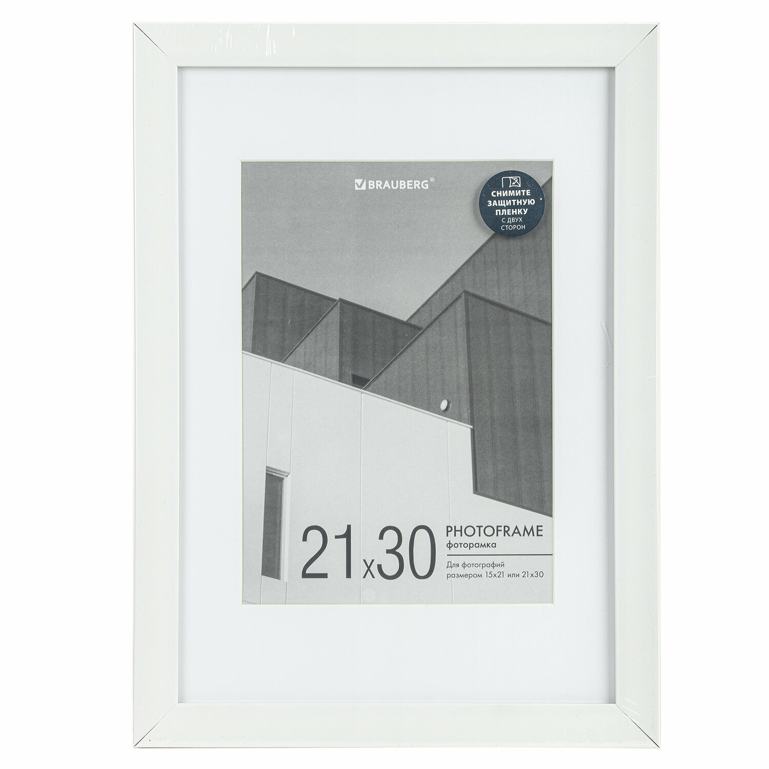 Рамка (фоторамка) для фото, фотографий, картин, грамот на стену А3 30х40, с паспарту А4 21х30, небьющаяся, багет, пластик, Brauberg, белая, 391278