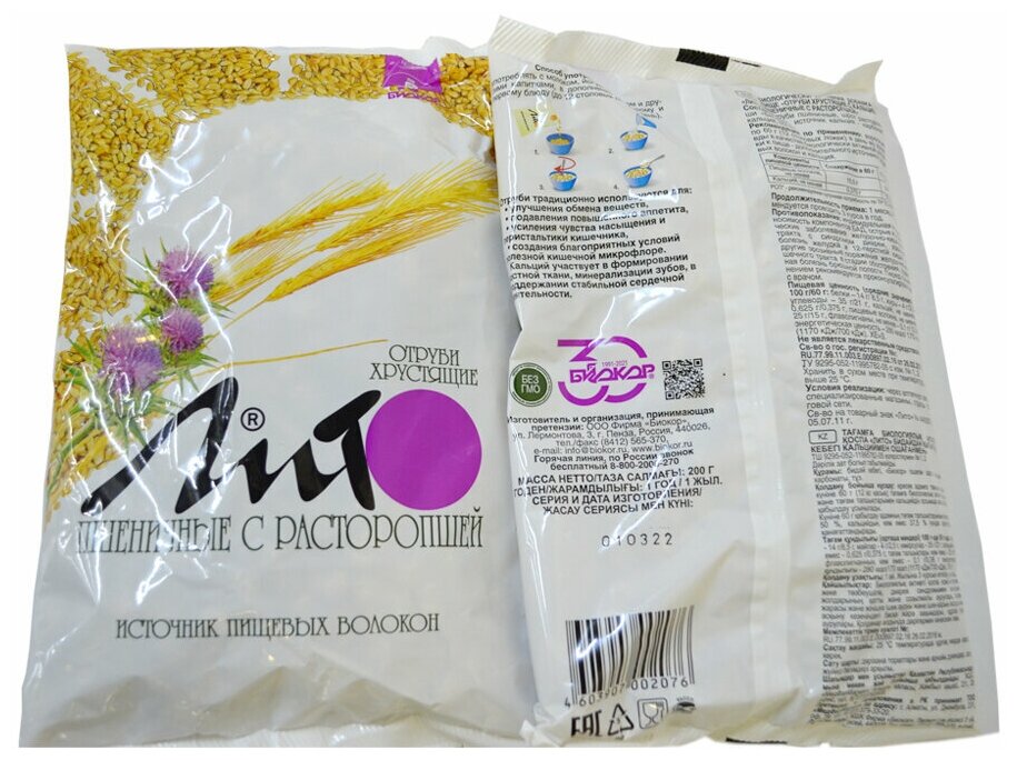 Отруби Лито хрустящие пшеничные с кальцием вкус расторопши 200 г интересное: