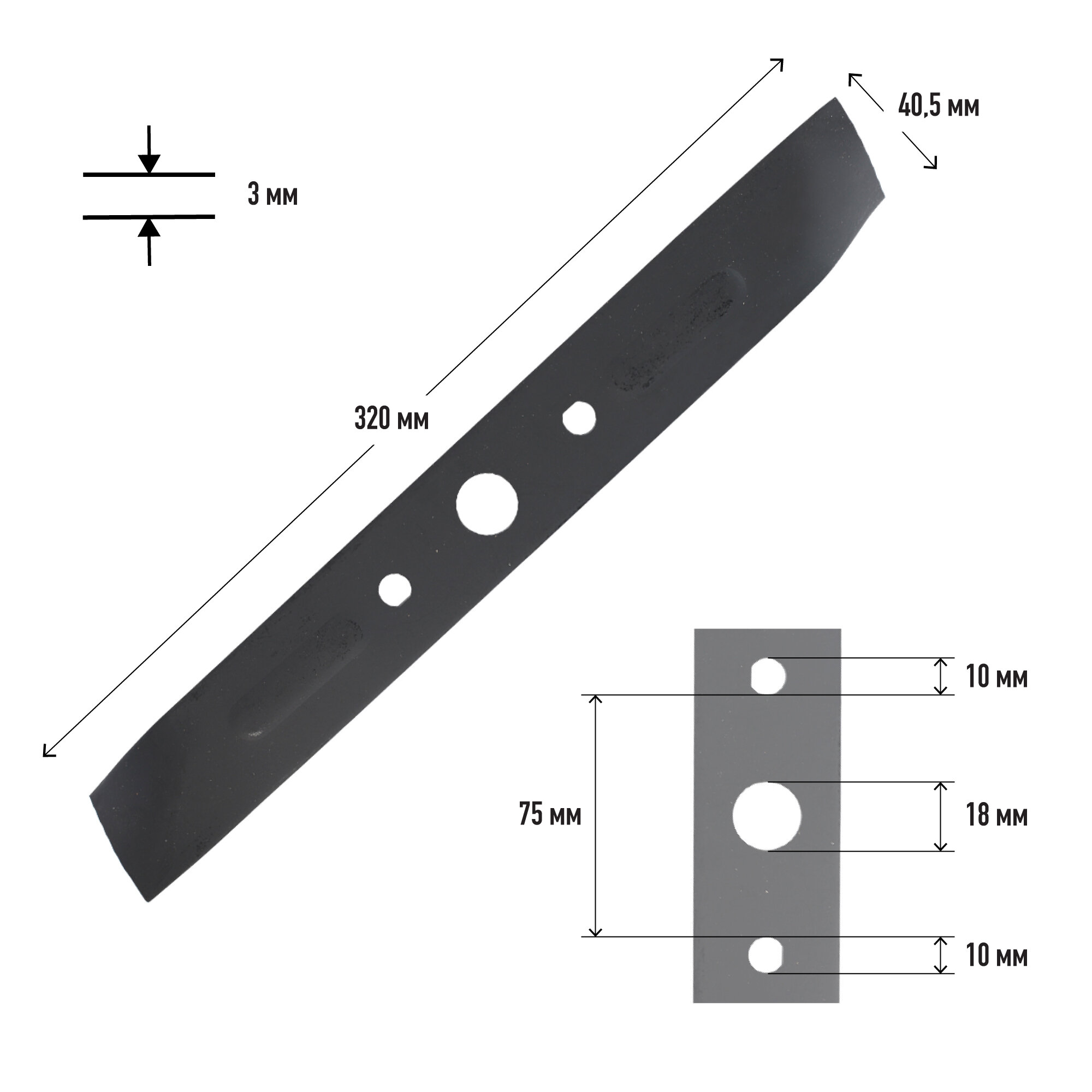 | Комплектация | Нож для газонокосилки Патриот MBS32E 512003200 |