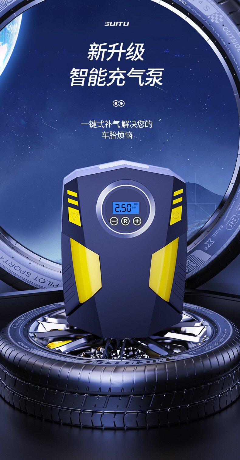 Портативный автомобильный насос с цифровым дисплеем и подсветкой, английская версия, черный/желтый