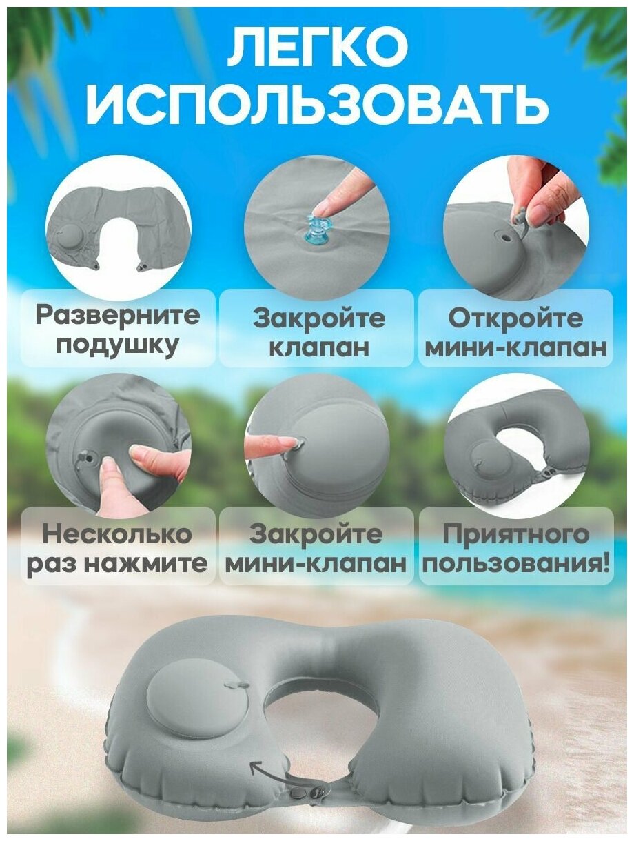 Надувная подушка для путешествий, размер 38x24x13 см, цвет серый, материал : молочный шелк интересное: