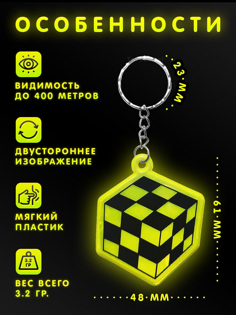СохранитьБрелок светоотражающий / фликер / светоотражатель на рюкзак, сумку, одежду - набор из 12 штук - Кубик (желтый) интересное: