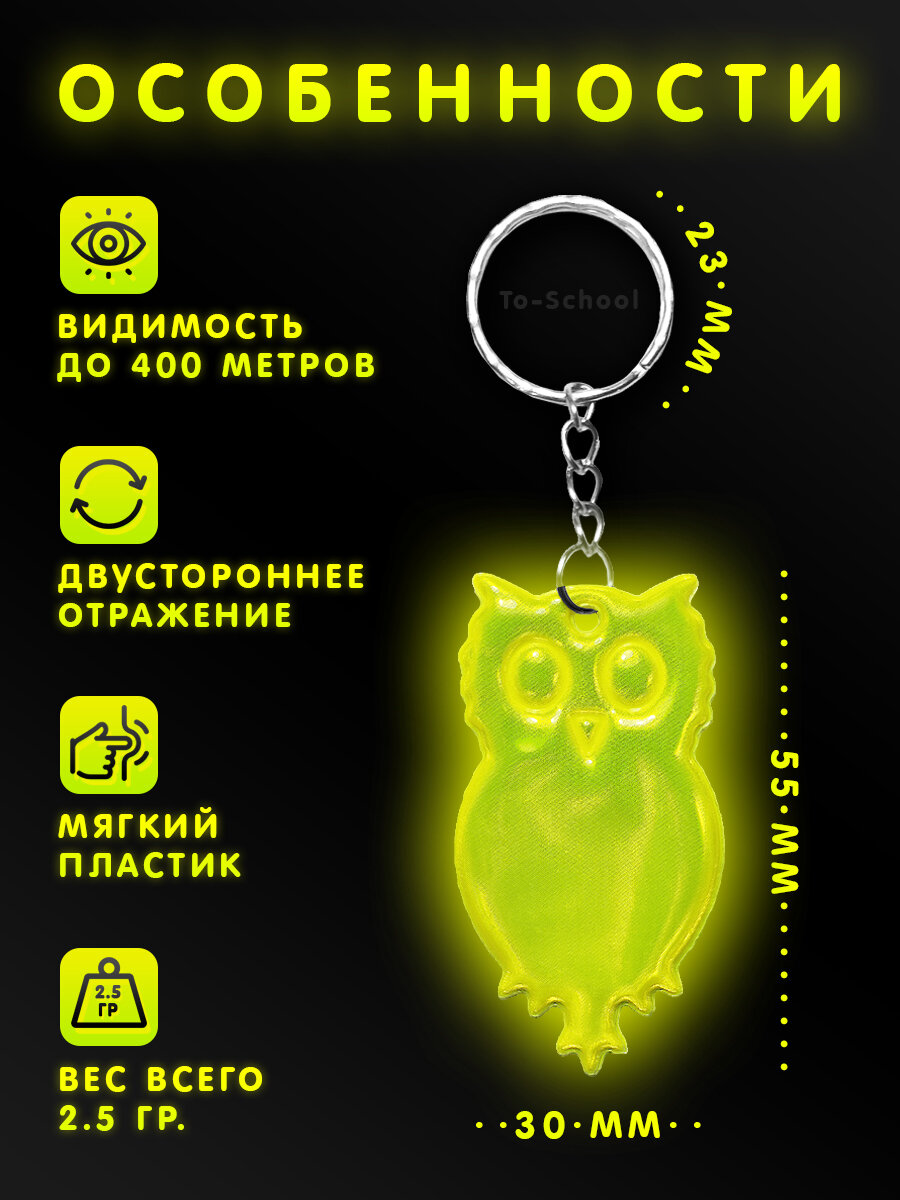 СохранитьБрелок светоотражающий / фликер / светоотражатель на рюкзак, сумку, одежду - набор из 12 штук - Сова (желтый) интересное: