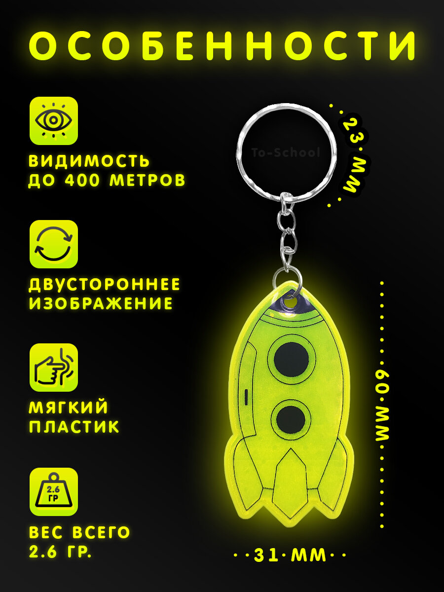 СохранитьБрелок светоотражающий / фликер / светоотражатель на рюкзак, сумку, одежду - набор из 12 штук - Ракета (желтый) интересное: