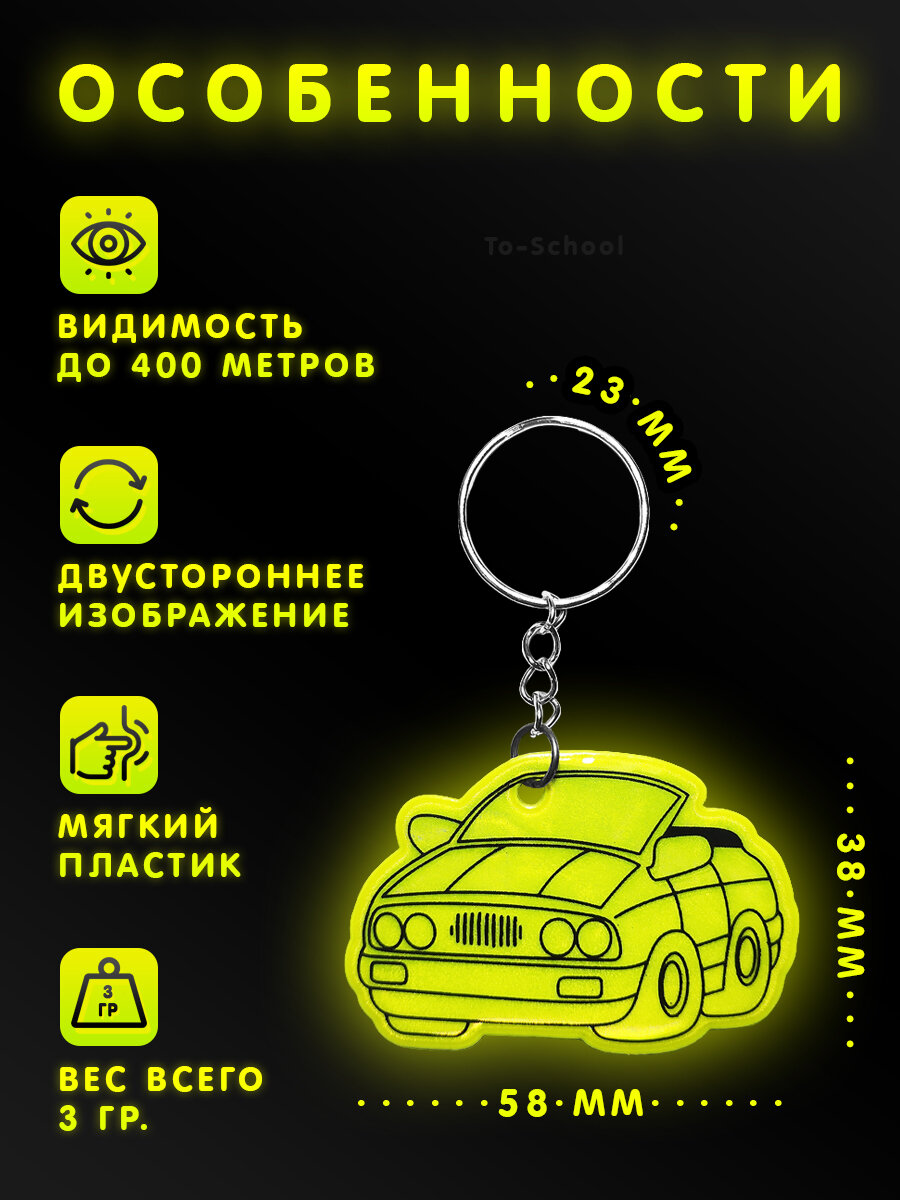 СохранитьБрелок светоотражающий / фликер / светоотражатель на рюкзак, сумку, одежду - набор из 12 штук - Машина (желтый) интересное: