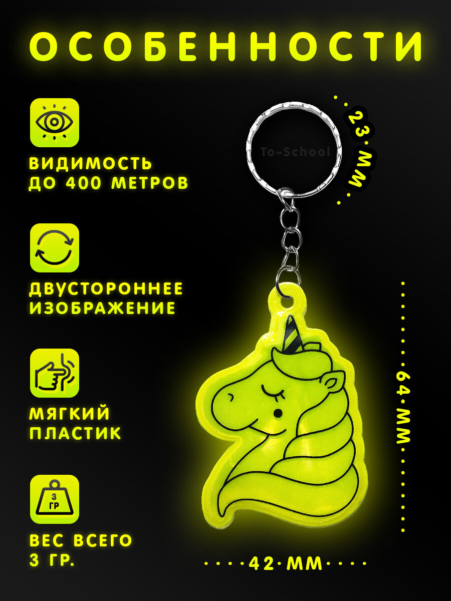 СохранитьБрелок светоотражающий / фликер / светоотражатель на рюкзак, сумку, одежду - набор из 12 штук - Единорог (желтый) интересное: