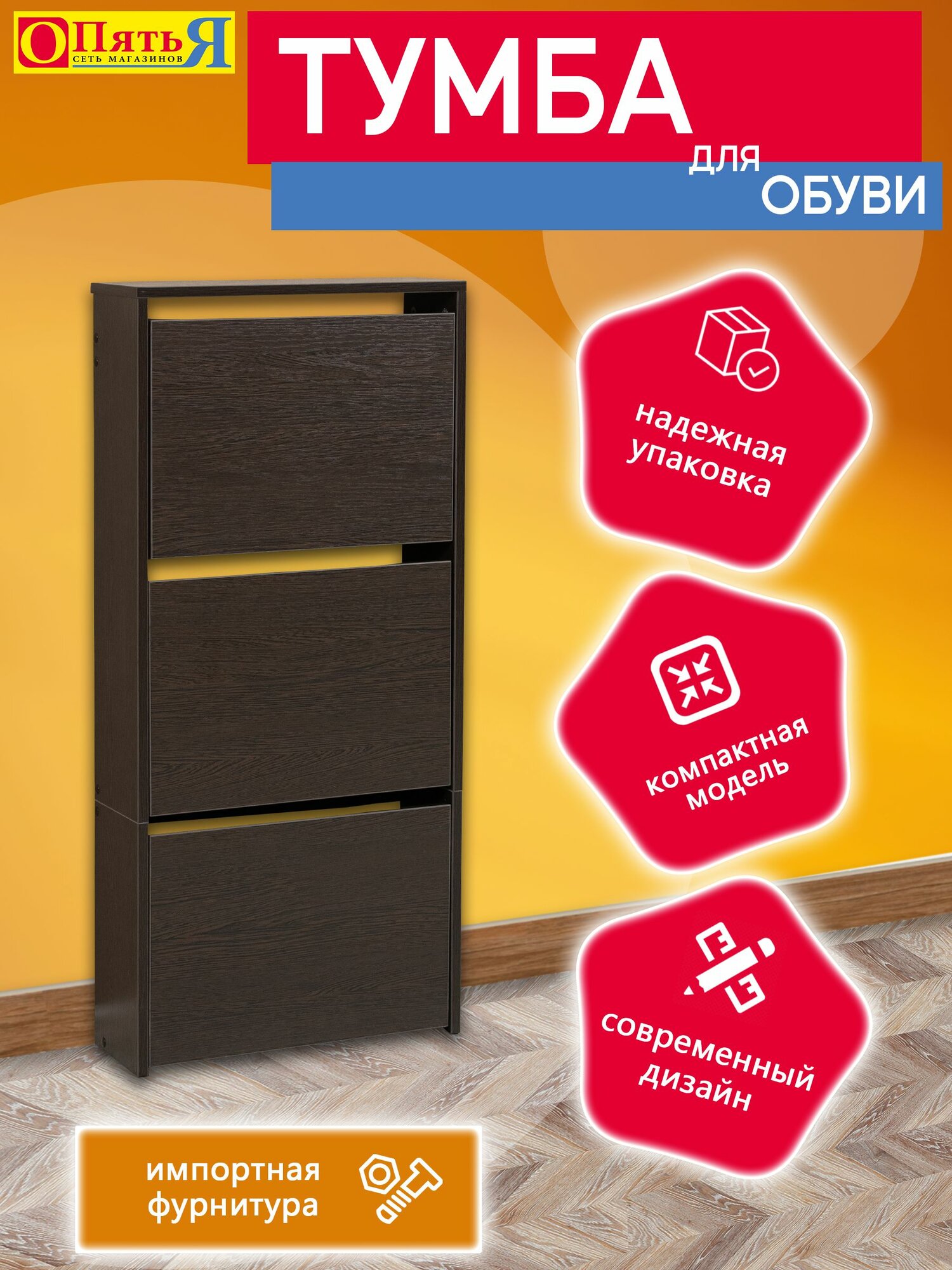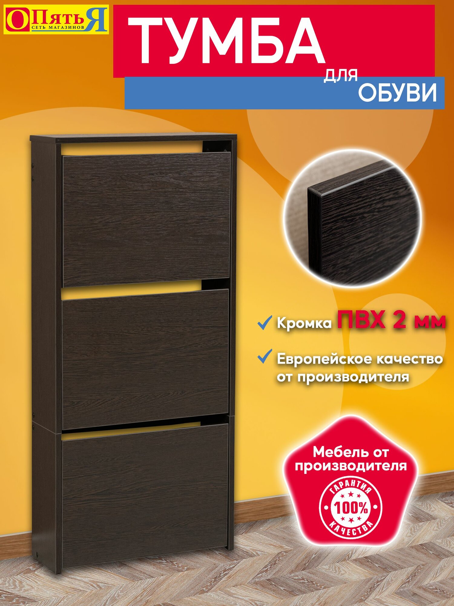 Обувница №27 в прихожую закрытая, высокая, узкая, деревянная, тумба для обуви 3 отделения