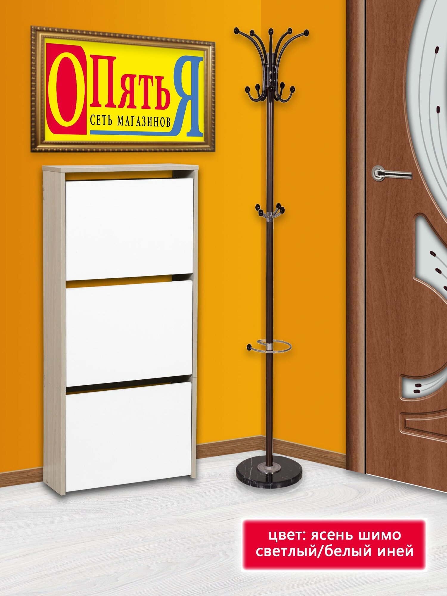 Обувница №27 в прихожую закрытая, высокая, узкая, деревянная, тумба для обуви 3 отделения