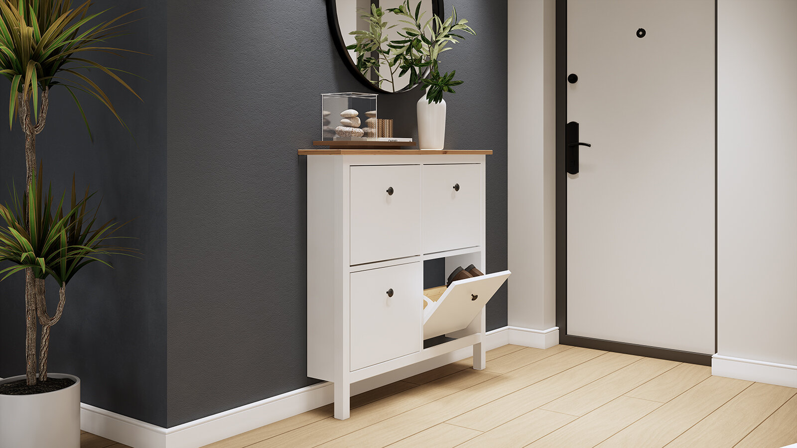 Купить Шкаф для обуви/ обувница в прихожую Хемнэс Hemnes/ Кымор, 106х101х22 см, белый/ светло-коричневый