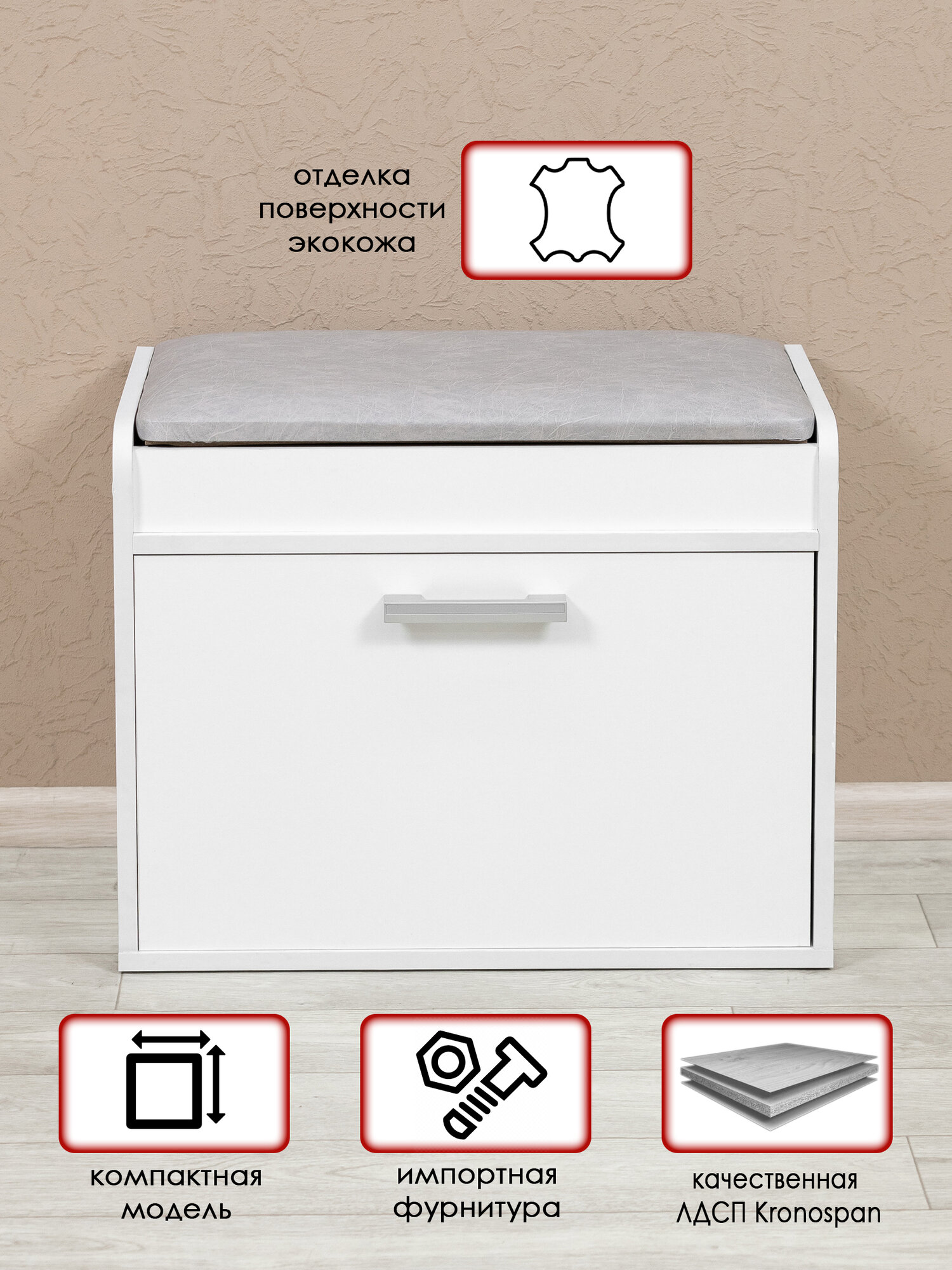 Тумба с сиденьем №8 в белом цвете интересное:
