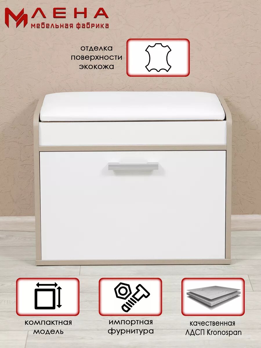Тумба с сиденьем №8 в цвете ясень шимо светлый/белый интересное: