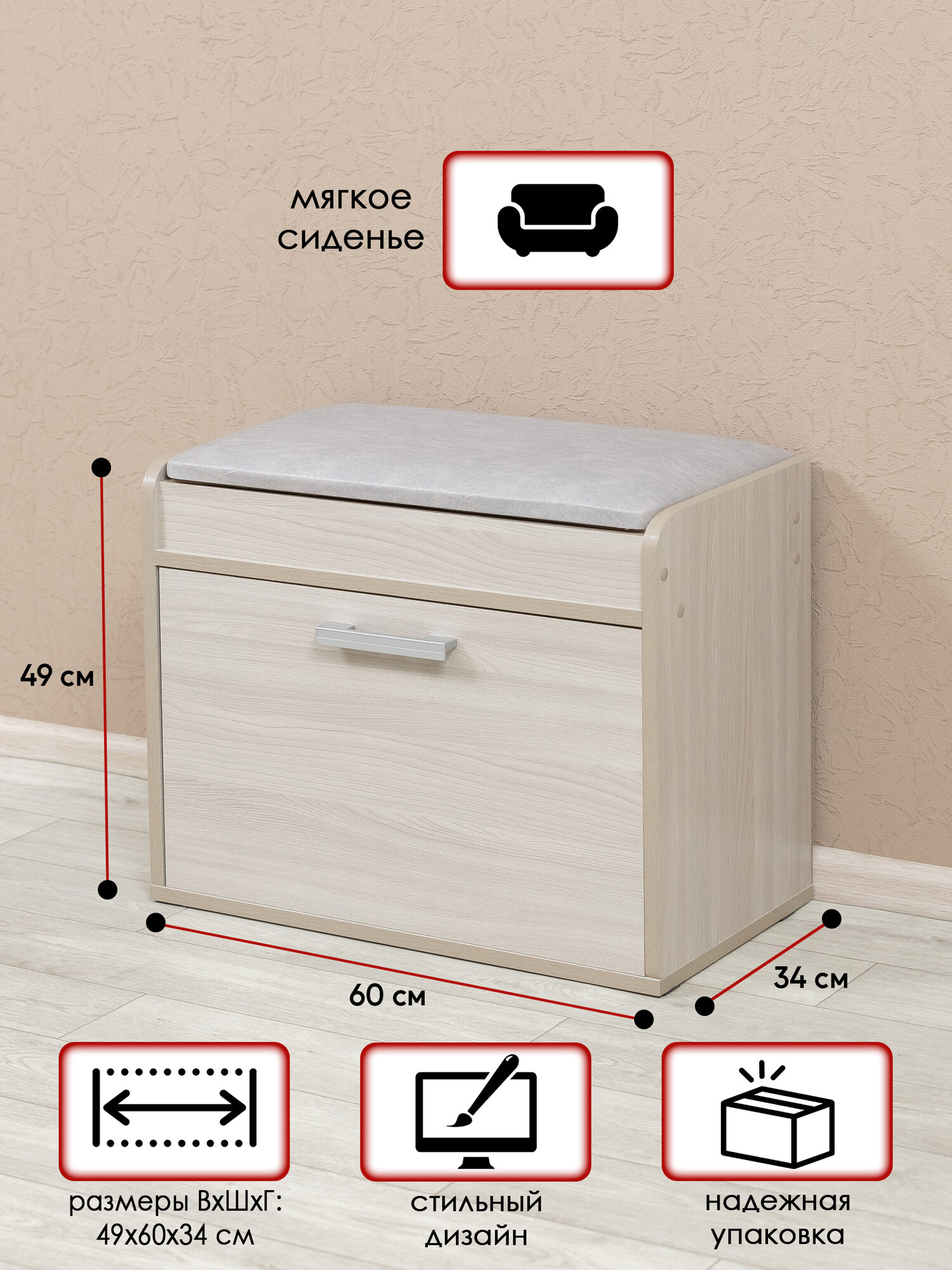 Тумба с сиденьем №8 в цвете ясень шимо светлый интересное: