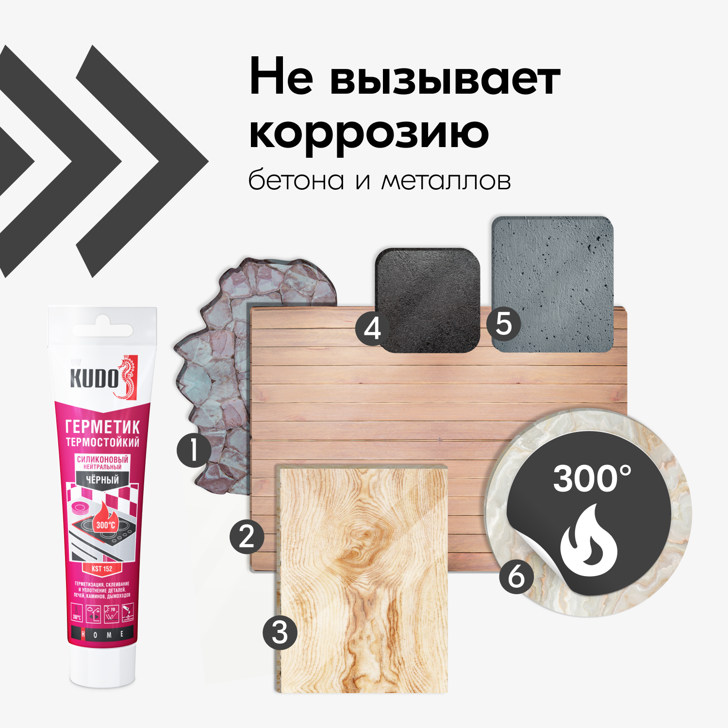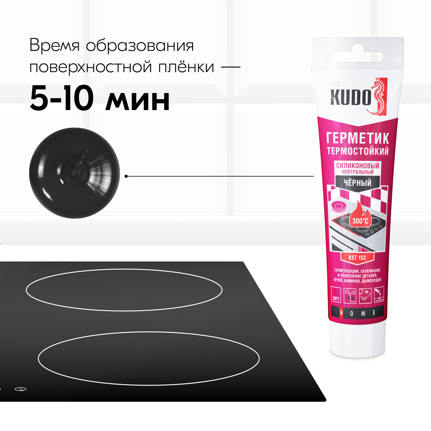 Герметик силиконовый KUDO термостойкий KST-152, 110 мл, чёрный интересное: