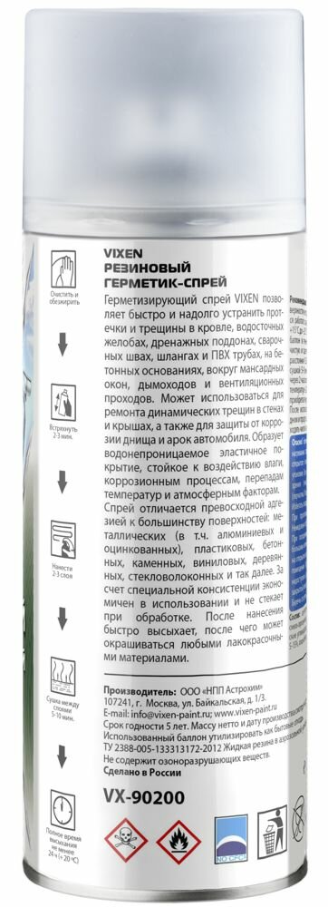| Дополнительная информация | Спрей-герметик резиновый Vixen 520 мл |