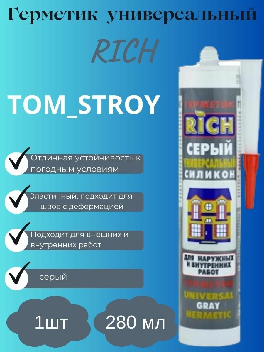 Герметик RICH, силиконовый, универсальный, для внутренних/наружных работ, 280мл, серый