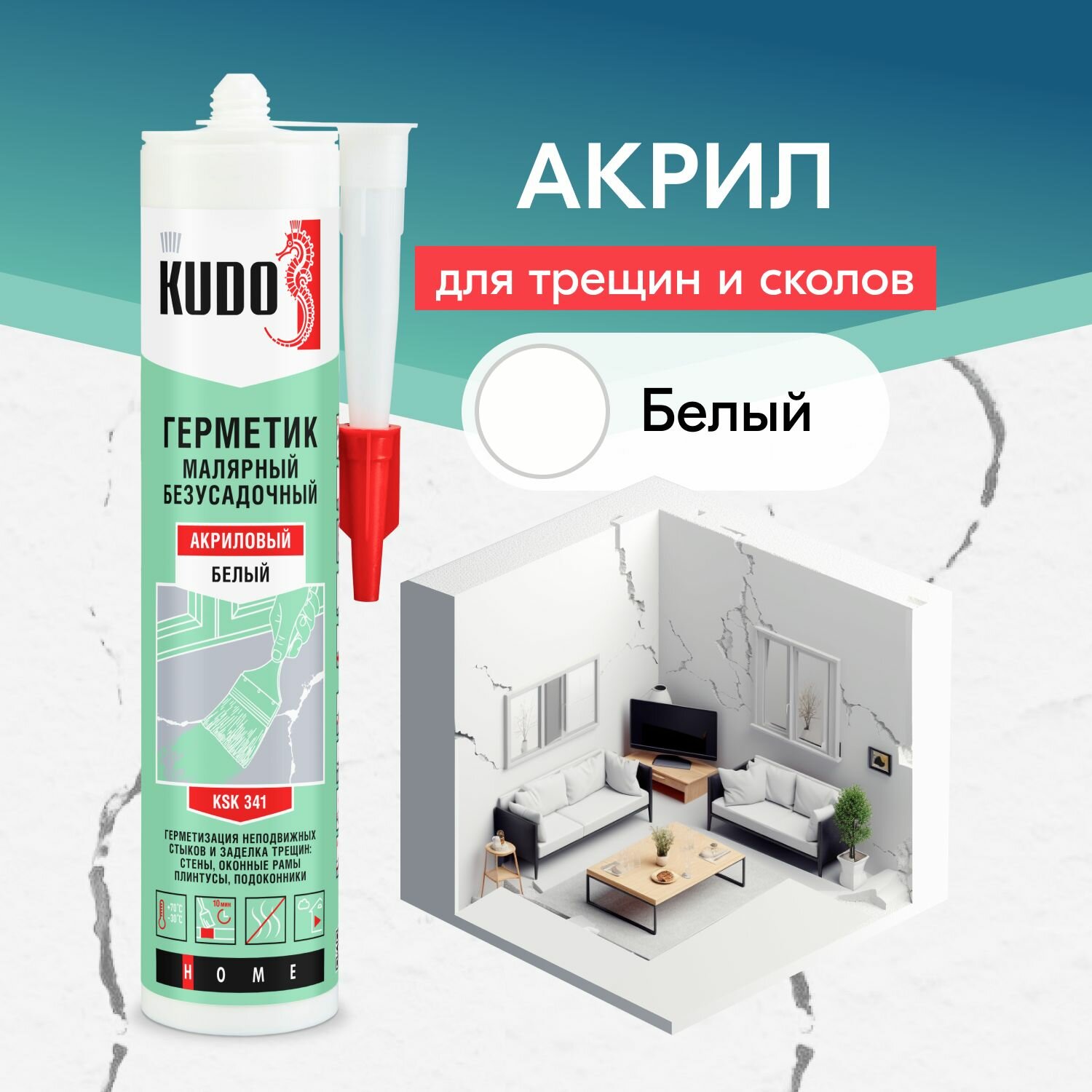 Купить Герметик акриловый безусадочный универсальный малярный KUDO "KSK 341", для заделки трещин, сколов, стыков и других дефектов в строительных материалах, 280 мл, белый