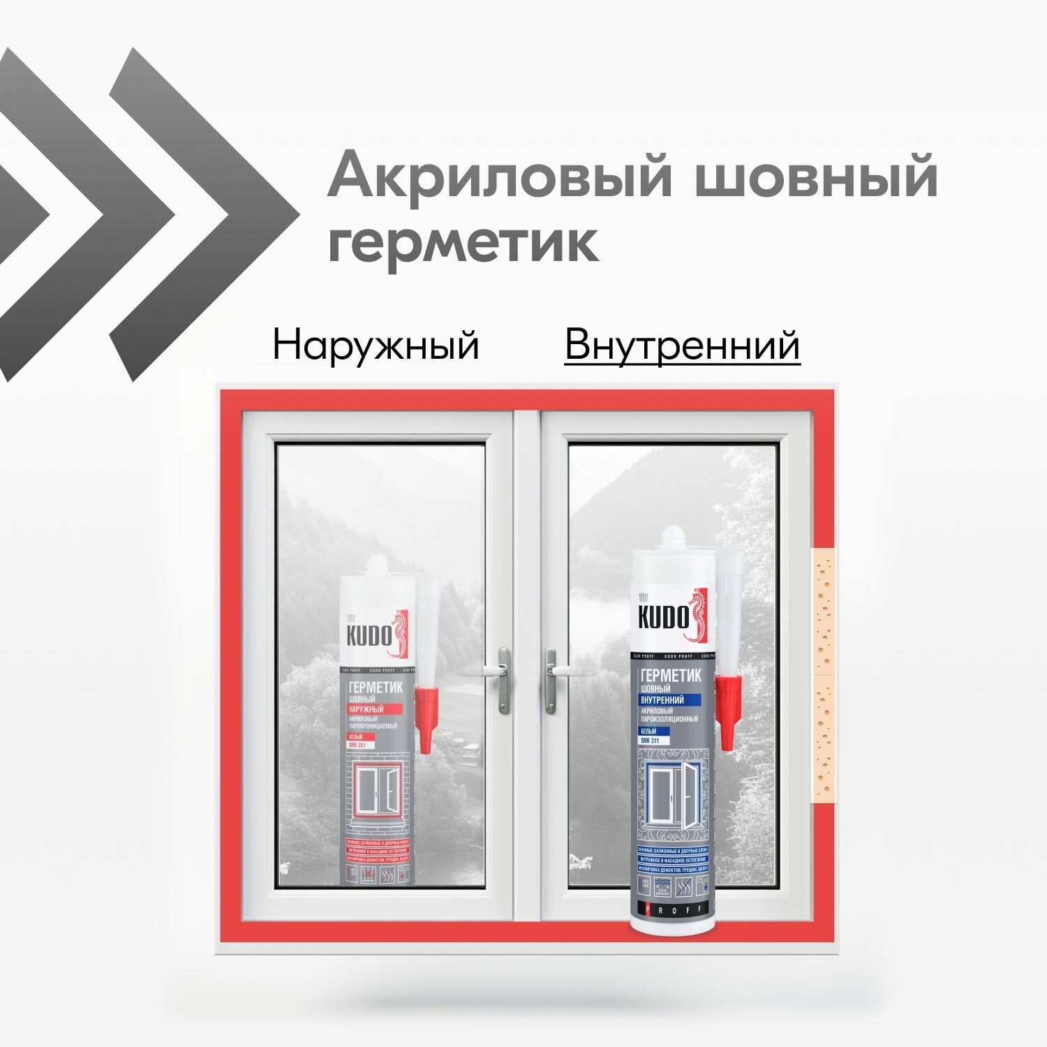 Купить Герметик акриловый KUDO PROFF, внутренний, пароизоляционный шовный, для монтажной пены при монтаже окон, SMK-311, 280 мл, белый