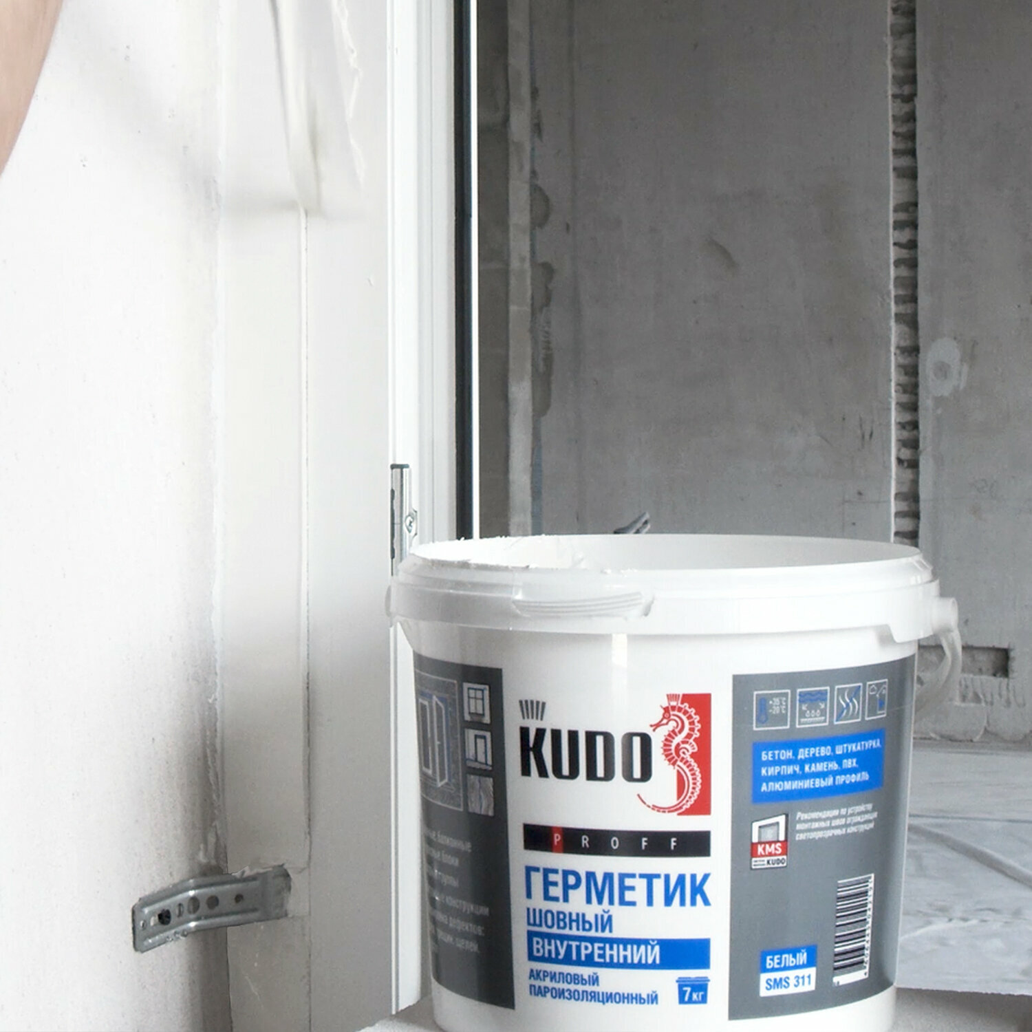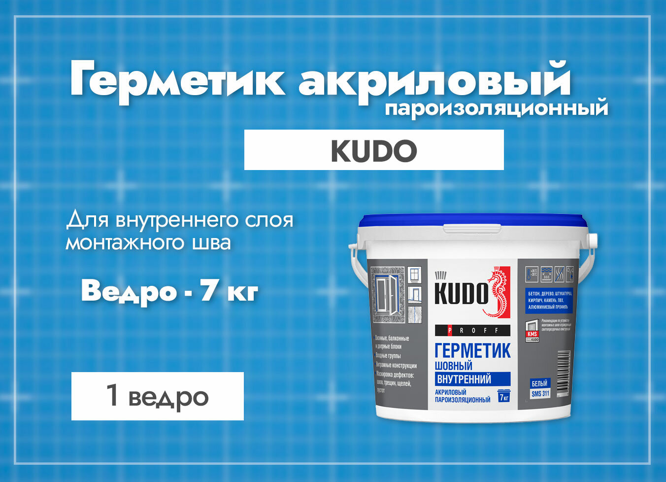 Купить Герметик акриловый KUDO PROFF, внутренний, пароизоляционный шовный, для монтажной пены при монтаже окон, SMS-311, 7 кг, белый