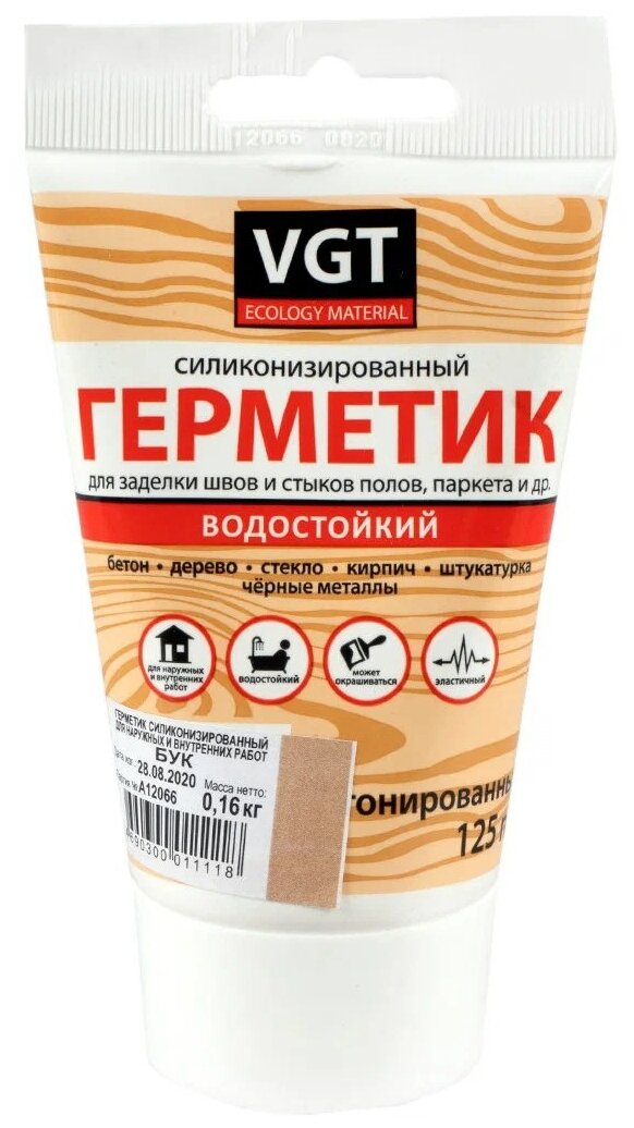 Герметик Силиконизированный VGT 0.16кг Бук для Герметизации Швов и Стыков Полов, Паркета и др / ВГТ*