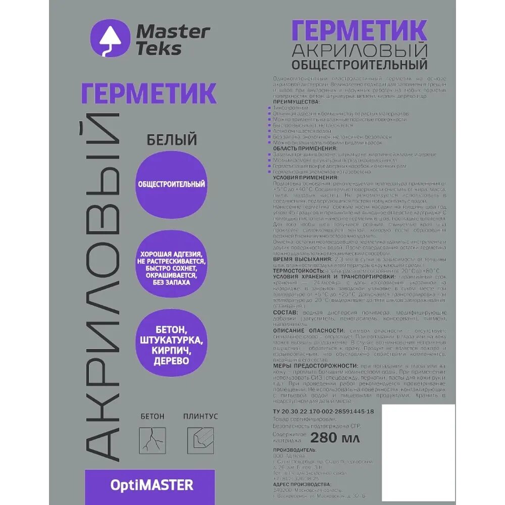 Герметик акриловый общестроительный MasterTeks Profimaster, 250 мл, белый