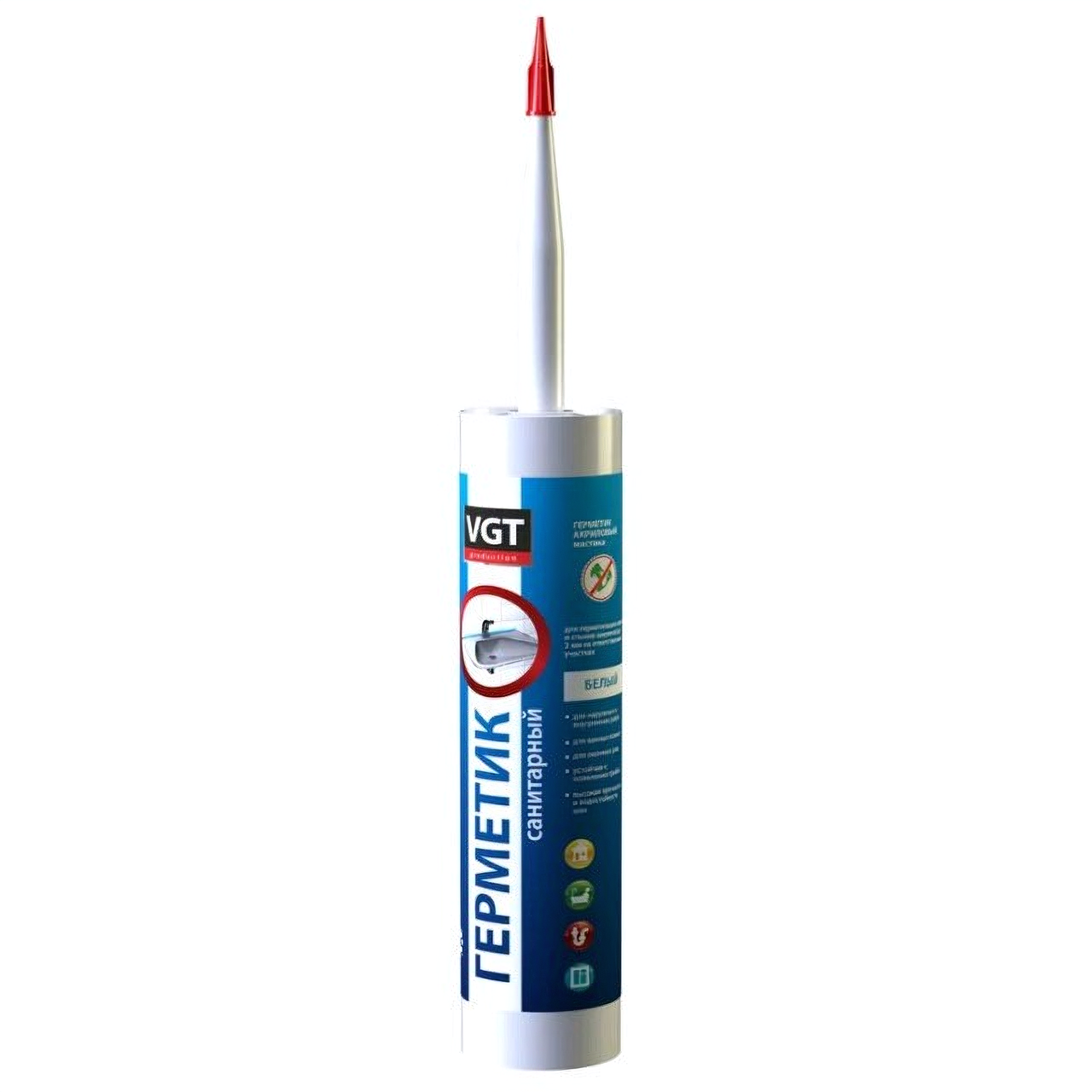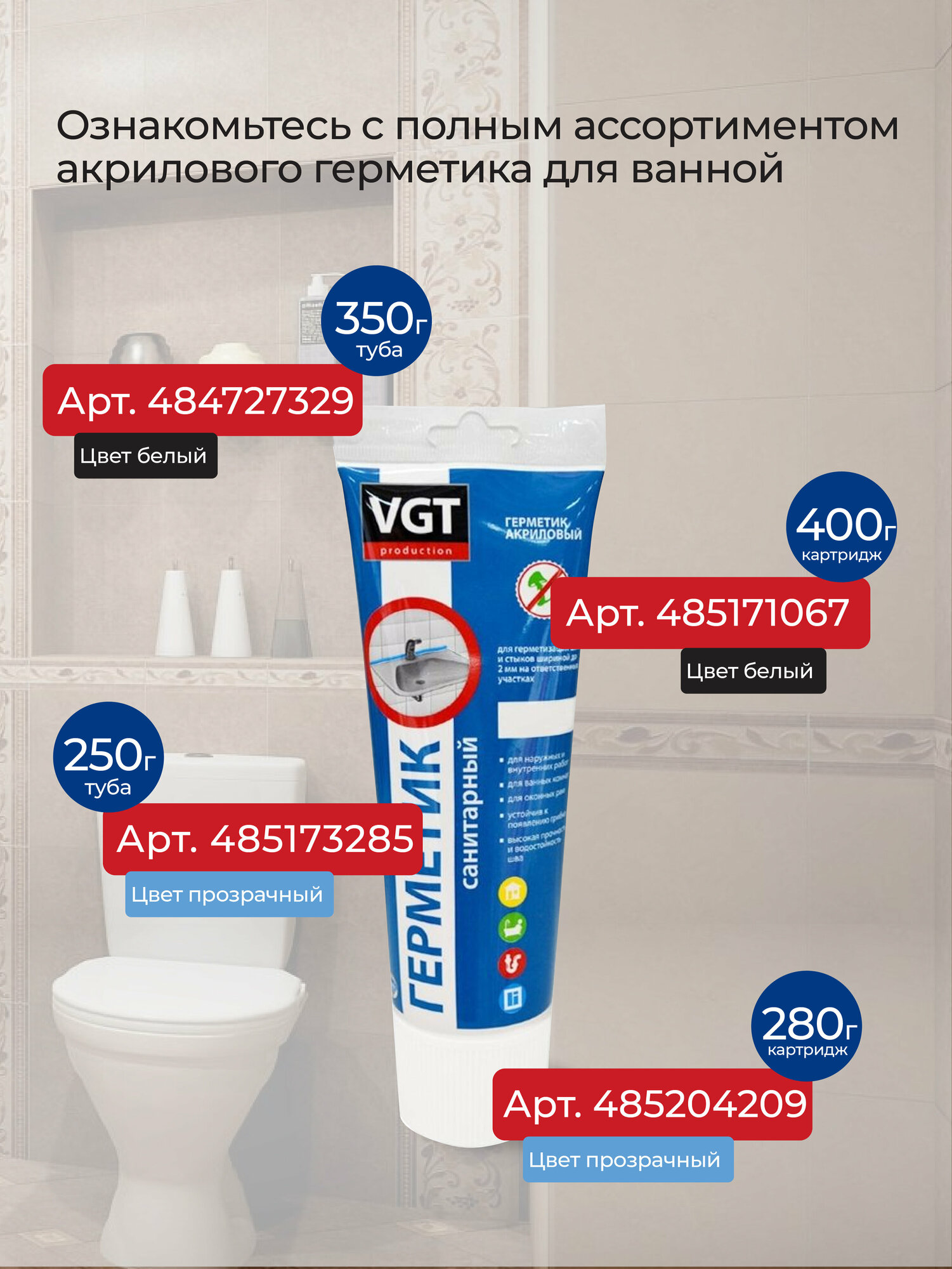 VGT герметик акриловый санитарный для внутренних и наружных работ, картридж, бесцветный (280мл)