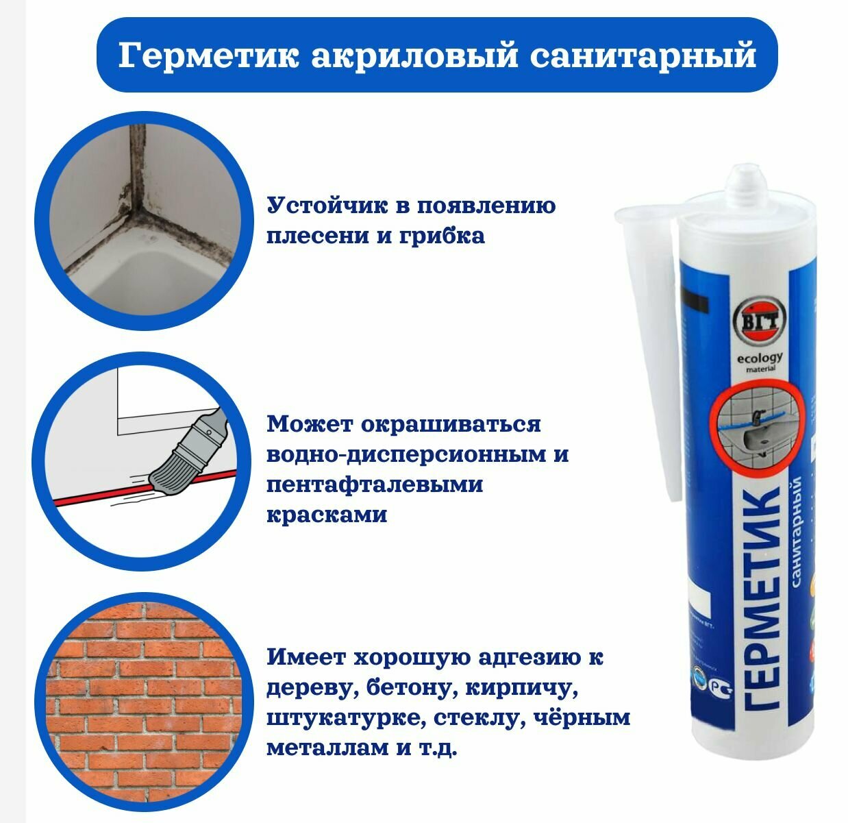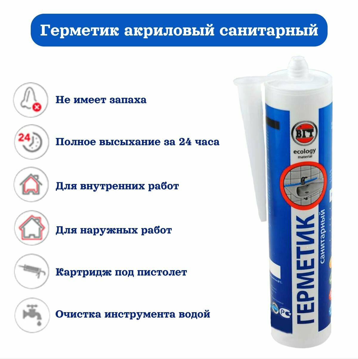 Акриловый санитарный герметик мастика для внутренних и наружных работ VGT 11604933